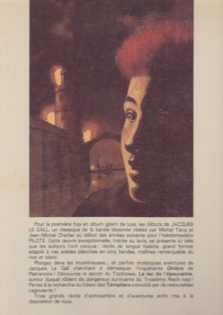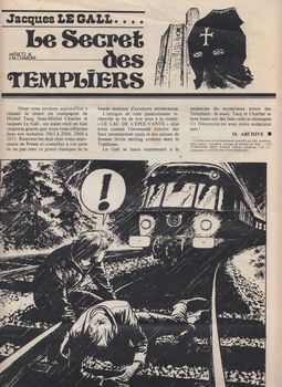 remarques: | album cartonné, grand format, N&B, dessin genre lavis Préface une des séries vedettes de Pilote dès 1959 jusqu'au dernier épisode "les naufrageurs" en 1966/1967 les 3 épisodes les plus intéressants parus dans Pilote sont présentés dans cet album soit - contre l'ombre nos 1 à 61 (1959/1960) - le lac de l'épouvante nos 65 à 129 (1960/1962) - le secret des templiers nos 309 à 349 (1965/1966) les autres récits - l'oeil de Kali nos 138 à 183 (1962/1963) - la déesse noire nos 190 à 238 (1963/1964) - les naufrageurs nos 363 à 390 (1966/1967) ont paru en albums dans les éditions "Péchés de Jeunesse" mais ne sont pas collectionnés ici les aventures de Jacques Le Gall, un routard à nouveau dans le genre scoutisme mais destinées à des lecteurs adolescents a) contre l'ombre (62 planches) Le Gall dans la forêt de Pierrenoire près de la frontière suisse est confronté par un trafic d'or qu'il découvre dans les ruines du château de Pierrenoire, trafic effectué par des contrebandiers depuis la frontière suisse b) le lac de l'épouvante (65 planches) Le Gall en vacances-camping en Autriche chez Herr Schumaker >> p. 70 la petite famille de Schumaker, rien que tes ponnes vemmes (et toutes portant des lunettes) avec un Le Gall grand amateur de bière (que fait la censure?) dans cette affaire, Le Gall découvre qu'un trésor composé de billets de banque en livres sterling, déposé pendant la guerre par les nazis, est entreposé au fond du lac de Toplitz, le problème réside dans la difficulté à parvenir au trésor qui est bloqué par des vieux troncs d'arbres qui se sont accumulés durant les années >> p. 84 les policiers autrichiens avec des casquettes plutôt à la française avec l'aide d'un agent britannique, Le Gall découvrira le passage jusqu'au trésor (de nouveau par des souterrains) après avoir eu affaire à d'anciens nazis également à la recherche du trésor >> une enquête un peu interminable pour ce récit c) le secret des Templiers (57 planches en partie dessinées par Follet) un homme destiné à mourir écrasé par un train, attentat organisé par de mystérieux hommes cagoulés, est sauvé par Le Gall, il lui révèle alors le secret des Templiers (à nouveau un trésor) >> p. 142 l'histoire des Templiers qui auraient réussi à dissimuler leur trésor dans le château de Gisors, mais celui-ci est caché dans une crypte souterraine qu'il faut encore découvrir à l'aide d'inscriptions informatives et des signes cabalistiques laissés par les Templiers, Le Gall et son ami parviendront à accéder à la fameuse crypte où les attendent les cagoulards (les descendants des Templiers) bien décidés à conserver le trésor, l'ami de Le Gall y perdra la vie mais Le Gall, destiné à être emmuré vivant, réussira à s'en sortir par un vieux puit conduisant à une rivière souterraine, toutefois Le Gall sera frappé d'amnésie par un choc violent et ne pourra plus se rappeler ses dernières aventures; et le trésor sera quand même perdu car la crypte souterraine sera ensevelie par un éboulement (l'histoire officielle est sauve) >> un album assez intéressant avec des récits pleins de ruines ou souterrains avec comme sujet la chasse au trésor dont le troisième épisode est le plus intéressant, un bon graphisme avec les scénarios qui sont tous de Charlier (genre Marc Dacier) mais qui n'ont peut'être pas l'originalité et l'humour de la "patrouille des castors" (la série Jacques Le Gall a été crée après coup), les textes de Le Gall étant un peu plus lourds et tirant en longueur pour les besoins des épisodes "à suivre" dans Pilote. >> commentaires sur Mitacq >> voir la "patrouille des castors" n.b. à voir les suppléments du Journal de Spirou contenant une version détaillée du "secret des templiers", en fait des templiers noirs cette fois! >> voir récits complets, Spirou (Journal de, suppléments) |