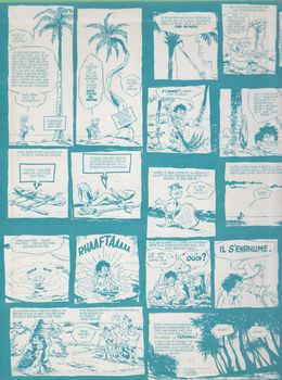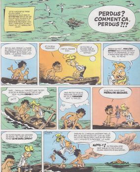 remarques: | >> voir aussi Martin Milan CBD Godard nos 19 et 59 Norbert et Kari perdus dans l'immensité du Pacifique échouent sur l'île déserte d'Astap qui se révèle être peuplée d'enfants (les zozos) cherchant à échapper au contrôle des adultes (les trumeaux) Kari est accepté comme zozo mais Norbert doit se soumettre aux tests secrets, étant ignare, il sera accepté comme zozo sous le nom de Apollon du réverbère, guerre contre les livres et la culture car au royaume d'Astap, les calembours, boutefades et autres cochonneries sont de rigueur >> p. 22 le dieu des zozos: le grand nanabozo n.b. Astap = à se taper le derrière par terre dans l'argot scolaire finalement les zozos seront récupérés par leurs parents-trumeaux, mais Norbert et Kari resteront sur l'île 2ème épisode: chinoiseries polynésiennes les affaires douteuses du marchand chinois sur l'île de Taratatah >> un premier album tout à fait charmant, avec un scénario original, à humour et plein de calembours, peut'être le meilleur album de la série (allusion un peu à "Peter Pan" et au "dieu des mouches" = lord of the flies) n.b. les pages de garde de l'album avec de nombreux gags sur l'arbre du cocotier Information Norbert et Kari est une série de bande dessinée créée par Christian Godard, publiée de 1963 à 1970 dans Pilote et en 1981 dans Gomme, éditée en album de 1974 à 1989 par Hachette, puis par Dargaud et Le Vaisseau d'Argent, elle met en scène le jeune polynésien Kari et son ami Norbert qui a décidé de fuir Paris, exaspéré par les conditions de vie métropolitaines l'histoire se passe en Polynésie sur le petit archipel de Taharatata, où Norbert s'est exilé pour trouver la tranquillité, bien que ses aventures ne soient pas de tout repos |