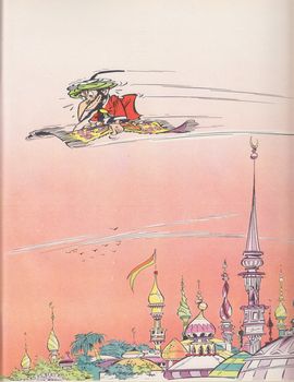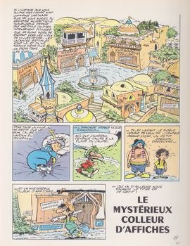 remarques: | le 4ème tome de la série (album de 46 pages dont la dernière page est formée d'une planche pleine page 1) le dissolvant malfaisant le djinn des marécages qui a le pouvoir de dissoudre la matière 2) l'invisible menace Omar le mage qui rend les choses invisibles >> p. 13 le chanteur Johnny Ali Bey 3) le diamant de malheur qui porte malheur, à voir: le gâteau hebd(r)omadaire >> p. 21 l'histoire de ce diamant dément du démon dès demain 4) la figurine magique le sorcier africain qui à l'aide d'une poupée et d'un cheveu de la personne concernée peut la torturer ou la faire mourir 5) le mystérieux colleur d'affiches l'affiche dans lequel on peut entrer, mais pas ressortir >> à nouveau un très bon album et un excellent graphisme de Tabary n.b. à noter la différence de graphisme entre certains épisodes (les anciens 1966? et les nouveaux 1967/1968) album imprimé par Saint-Hilaire Offset |