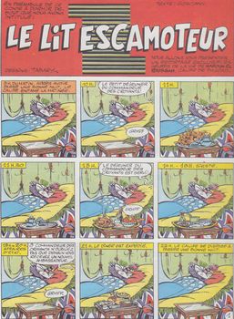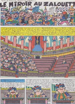 remarques: | 1) le conte de fée d'Iznogoud rencontre avec la fée-apprentie Carambole qui doit transformer le calife en vizir, mais il y aura plutôt deux vizirs 2) le miroir au zalouett politique à Bagdad avec l'assemblée califale ou la diète qui favorise le régime, zalouett, le génie du miroir, enverra Iznogoud dans l'envers du miroir 3) le lit escamoteur les meubles magiques de l'ambassadeur Ibn Allajouah >> p. 31 une analyse sur la BD pour endormir le calife 4) les minarets magiques suite à la protestation des lecteurs concernant la non-réalisation du voeu de Iznogoud au poste de calife, Iznogoud doit subir plusieurs tests qu'il gagnera bravement, mais il échouera au 10ème: la persévérance >> un album bien conçu avec un bon graphisme, mais le manque d'imagination commence gentiment à se faire sentir imprimé par Pagano, Genova |