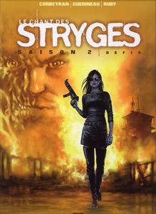 remarques: | prélude (qui reprend en partie un épisode de la série "le clan des chimères"): l'histoire des stryges en 1269 où un inquisiteur zèlé qui dût faire façe aux stryges est frappé d'horreur, il renonce à la foi et se consacre à l'étude des stryges, étude qui sera écrite par la main d'un jeune copiste dans un livre: "le grimoire de Venoncius" actuellement ce grimoire est déposé dans un monastère écossais c'est alors qu'un groupe armé investit le monastère et s'empare du grimoire >> p. 8 des moines qui savent bien manier le pistolet-mitrailleur de leur côté, Kevin, Debrah et Jill ont reçu un défi de Weltman mais ils ne savent ni quand ni où, c'est alors que Kevin est enlevé et Debrah+Jill sont toutes deux blessées durant l'action >> p. 13 le message de Weltman qui lance un défi au trio >> p. 19 entrée en scène des hybrides Abeau et Cylinia tous les trois ont été agressés par les hommes de main d'Abeau et de sa soeur Cylinia, Cylinia qui a des dons de guérisseuse ne tarde pas à remettre sur pied Jill et Debrah, Abeau et Cylinia attendent de Kevin que le trio les aide à récupérer le grimoire, en contre-partie, ils les soutiendront dans leur lutte contre Sandor Weltman par la suite, Debrah repère Reese, le chef du commando qui s'est emparé du grimoire, à Sacramento, Debrah réussit à s'infiltrer dans l'avion privé de Reese en se faisant passer pour une envoyée de Weltman et tout le monde s'envole pour la base secrète de Weltman mais Reese n'est pas dupe et démasque rapidement Debrah >> p. 32 la fonction du grimoire qui permet de contacter et d'asservir les stryges ainsi que de connaître l eur métabolisme et peut'être même de les éliminer entretemps Jill et Kevin récupèrent la plume de stryge que Kevin avait caché en 1997 dans la maison de Josh, il espère pouvoir l'analyser à fond pour en tirer quelque conclusion et peut'être guérir Melly et Jill quant à Debrah, elle se débarrasse un peu trop facilement du mercenaire Reese beaucoup trop négligent, Debrah récupère le grimoire tout aussi facilement et détruit la base secrète en s'envolant avec le jet privé de Reese (une super wonderwoman) le grimoire est rendu à Cylinia et Abeau contre des informations importantes sur Weltman et sur quelque chose que Weltman a ravi aux stryges >> apparition d'Abeau et de Cylinia de Roquebrune (voir le cycle le clan des chimères) dans ce deuxième volume, un volume plein d'action, mais quelque peu déroutant et irréel (par exemple les prouesses de Debrah), toutefois Corbeyran fait preuve de beaucoup d'imagination à noter: Cyliane s'appelle maintenant Cylinia (la fille de Cyliane?) n.b. chtonien ou chthonien = relatif aux divinités infernales, à l’enfer, dans la mythologie grecque |