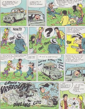 remarques: | aventures prépubliées dans Pilote dès 1962 le détective Jean Sairien est chargé par la famille Bontemps de retrouver leur parent Georges disparu lors de la 2ème guerre mondiale et qui est sensé avoir dissimulé le trésor de la famille, il est devenu vagabond sous le nom du père Lafauche et ce sera Valentin, un autre vagabond, qui le reconduira dans sa famille après bien des mésaventures >> p. 28 début des péripéties de la 2 CV, premier modèle >> p. 43 un Valentin qui est couvert de boutons dès qu'il a affaire à la police >> un album sans prétention, mais plutôt amusant qui se lit agréablement n.b. ce serait plutôt les bons instincts de Valentin en tout cas Information Valentin le vagabond est une série de BD créée par René Goscinny (scénario) et Jean Tabary (dessin) poursuivie par ce dernier seul à partir de 1964, publiée du 1er mars 1962 au 16 août 1973 dans Pilote, puis 1.3.1974 au 1.11.1974 dans Lucky Luke, certains courts récits étant repris par la suite dans les magazines les récrés de Totoche et les vacheries de Corinne à Jeannot, la bande sera éditée en album de 1973 à 1977 aux éditions Dargaud, puis en réédition aux éditions Tabary en 1991 et 2001, scénario et graphisme produits uniquement par Tabary René Goscinny avait apprécié le premier récit de Grabadu et Gabaliouchtou publié par Jean Tabary dans Pilote et souhaitait travailler avec ce dernier, en 1962, René Goscinny crée ainsi à la suite deux séries pour Jean Tabary: les aventures du Calife Haroun el Poussah, série qui sera renommée par la suite les aventures du Grand Vizir Iznogoud, dans le magazine Record le 15 janvier 1962, puis Valentin le vagabond dans le magazine Pilote le 1er mars 1962, après quatre courts récits, accaparé tant par les nombreuses autres séries qu'il scénarise que par ses fonctions de rédacteur en chef de Pilote qu'il occupe à partir de 1963, René Goscinny renonce à Valentin le vagabond, Jean Tabary poursuit la série seul régulièrement jusqu'en 1974, écrivant tous les scénarios, à l'exception de deux épisodes dont le scénario a été écrit par Fred: l’alchimiste en 1969 et un récit court de deux planches en 1970: la réussite, à la suite d'un différend entre Fred et Jean Tabary, ce dernier n'a dessiné que les quinze premières planches de l'alchimiste, le reste du récit ayant été dessiné par son frère, Pierre Tabary, sous le nom de Peter Glay qui réalise seul le dessin de la réussite Valentin est ainsi présenté par René Goscinny au début du premier récit: "Valentin, homme fin, cultivé, un peu poète, aime beaucoup de choses: la liberté, les fleurs, les animaux, et même les gens", le ton est donné: René Goscinny et Jean Tabary réalisent avec Valentin le vagabond, sorte de Charlot hippie, "une fable sur une génération qui, une fleur a la bouche, rêvait de peace and love" Valentin est donc un vagabond très sympathique, grandement naïf, aimant la nature, divaguant dans la campagne française et réussissant toujours à être embarqué contre sa volonté dans d’incroyables péripéties, durant toutes ses aventures, il doit abandonner son vagabondage et s'immerger dans la folie du monde, croisant toujours des personnes plus bêtes que véritablement méchantes, notamment des gendarmes qui ne voient en lui qu’un voleur (décidément Tabary n'aime guère les gendarmes) |