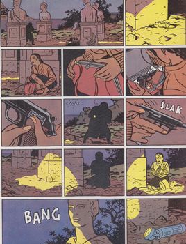 remarques: | à la plage de Cassis-sur-Mer, le cadavre d'une femme est rejeté par les flots, une 2ème femme a un accident sur la route de la côte et est récupérée par le trio en vacances, elle s'appelle Alaïa, d'origine tunisienne et est domiciliée chez un sculpteur des environs dont elle est le modèle >> p. 14 l'atelier du sculpteur >> p. 16 l'arrivée incongrue du prof. Piccard avec son bathyscape alors que la planète semble menacée par une comète (référence à la comète dont la dernière apparition il y a environ 2000 ans a eu lieu à Carthage) >> p. 21 le client du bistro qui veut escargasser le prof. Piccard Freddy tombe amoureux de la belle Alaïa et s'efforce de sauver la jeune femme de l'emprise du sculpteur qui a l'habitude d'éliminer ses modèles après les avoir utilisés >> p. 27 à 29 3 pages sans texte la populace va faire un mauvais sort à Freddy et Alaïa, mais la comète intervient et bouscule les évènements alors que Alaïa prend la fuite avec Piccard dans le bathyscape, laissant Freddy et ses amis abandonnés sur la plage >> un scénario loufoque, pas du tout sérieux, qui reste nonchalant tout en restant du vrai Chaland avec Carthage et Salammbô en arrière-plan, le graphisme lui reste superbe |
