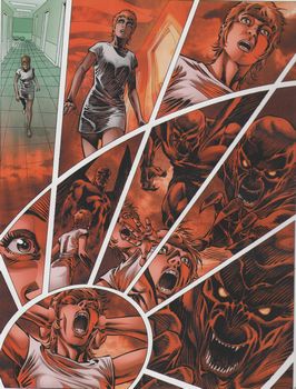 remarques: | lors de l'incursion chez Synthylab, Kevin, parti en éclaireur, se fait repérer et capturer par Reese >> p. 6 la rencontre avec Weltman revêtu de sa tenue aseptisée et de son masque de crocodile Weltman propose à Kevin un marché: la vie de Melly contre la capture de Debrah (mais pas pour lui faire du mal) et pour lui démontrer sa capacité à guérir Melly, Weltman veut faire un test sur Jill qui montre les mêmes symptômes que Melly par amour pour Melly, Kevin accepte, il devra alors attirer Debrah et Jill à un traquenard dans l'immeuble de Synthylab entretemps, avant de rejoindre Kevin, Jill et Debrah apprennent que Abeau et Cylinia sont des descendants des Roquebrune et aussi du chimère-cornu, ils sont devenus de parfaits hybrides >> p. 19 à 22 les crise de folie de Melly >> p. 24 l'ordre des choses veut dire que la nature n'est pas un chaos et si l'homme peut découvrir les lois de l'harmonie dans la nature, il est incapable de les inventer par la suite, Jill et Debrah se font capturer par les hommes de Reese mais Abeau et Cylinia restent en faction devant l'immeuble >> p. 32 Abeau essaie durant l'attente de déchiffrer le message "Crandl-2-Meanings = Crandl-double-sens" après avoir constaté la guérison de Jill, Kevin avec Reese est envoyé chez le prof. Chapman pour ramener Melly, ils sont pris en filature par Abeau et Cylinia arrivé chez Chapman, Kevin constate que Melly a cessé de vivre, tandis que Reese supprime Chapman qui connaissait trop de secrets sur Weltman, Melly morte, Reese allait également se débarrasser de Kevin lorsqu'il est arrêté par Abeau et Cylinia également arrivés sur les lieux >> p. 38 Weltman serait un homme de parole dixit Reese >> p. 44 Melly est morte mais est-elle vraiment morte? de son côté, Weltman a déchiffré lui-même le message du livre de plomb, c'est une table de défixion qui contient une fois déchiffrée la solution pour la fin des stryges dernière page: le façe-à-façe Weltman/Debrah que nous révèlera-t-il? que Weltman et Crandl sont la même et unique personne? pourquoi Weltman s'intéresse-t-il autant à Debrah? quel est le secret de Debrah, notamment le secret de ses mains sans empreintes? >> dernier épisode avant la révélation finale, à nouveau un très bon album avec suspense et imagination (dont le cours de biologie sur l'ADN par Weltman) et le graphisme n'est pas mal non plus, mais quels problèmes encore à résoudre! |