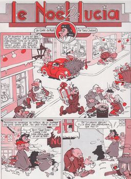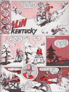 remarques: | en fait le premier album de Yves Chaland recueil satirique sur la presse BD en l'occurence le journal BD "captivant" (ami partout toujours) paraissant dans les années 1950 à 1955 en parodiant des bandes dessinées plagiées sur des héros et histoires célèbres et tournant ces récits en dérision parmi les meilleures bandes: - menace à la terre - Slim Kentucky (parodie de Red Ryder) jouant au père Noël sadiste, - le Noël de Lucia (parodiant Esmeralda et Quasimodo), spécial frisson, - l'énigme du mystérieux puit secret - John Howard l'aviateur - Cestoc et Cestac - Gégène l'idole des jeunes avec Johnny Marino alias Johnny le Chauve, - John Sahara l'aventurier - Jack Peterson - les aventures de Jim l'explorateur - Max Carter contre les gangsters - le temps du châtiment - une nuit de terreur >> p. 37 à voir: la voiture des années 50 de Gégène >> quelques bons gags bien combinés et dignes d'intérêt, mais surtout de jolies illustrations, c'est loufoque mais vraiment captivant avec une couverture d'album bien faite n.b. Yves Chaland 1957-1990 >> voir aussi CBD no 60 F'Murr - en 1975 après l'école des beaux-arts de St-Etienne, Chaland créé avec Luc Cornillon son propre fanzine "l'unité de valeur", - en 1978 il travaille sous l'impulsion de Dionnet pour Métal Hurlant et Ah Nana, - 1979 pastiches de la BD des années 50 dans "captivant", par la suite création de Bob Fish, Adolphus Claar, John Bravo, Freddy Lombard, etc - en 1982 apparition de Al Memory ou le Jeune Albert, garnement bruxellois aussi fourbe que méchant Chaland devient le champion de la ligne claire, mouvement graphique; de retour aux sources franco-belges de la BD, il deviendra aussi l'un des chouchous du monde publicitaire, - en 1990 Chaland meurt dans un accident de la circulation |