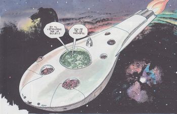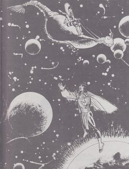 remarques: | le premier volume d'une série mémorable, le vagabond des limbes (du latin limbus, "marge, frange" correspondant à deux lieux de l'au-delà situés aux marges de l'enfer, lieu où étaient les âmes des justes dans l'Ancient Testament et où vont celles des enfants morts sans baptême; par extension, ils désignent un état intermédiaire et flou, lieu incertain) chaque volume comprend sur le premier plat un texte philologique, donnant une idée du thème de l'album, tome 1 ceci est l'histoire d'un homme qui sillonna l'espace jusqu'aux plus extrêmes limites de l'univers, plongea dans cent galaxies et laboura le destin de mille planètes, son nom résonnera longuement dans les replis du temps, écoutez, il se nomme Axle Munshine Axle Munshine, le grand conciliateur, chargé par la Guilde de l'Empire de réconcilier les peuples de l'univers (surtout en faveur de l'Empire), Musky, le petit clown, fils du prince des Eternautes, l'accompagne lors d'un retour de mission sur le vaisseau d'argent, l'Empire est gouverné par le grand Médiat Suprême qui dirige le grand conseil à Xylos, capitale de l'Empire Galactique il y a aussi Reemihc, gouverneur-femelle de la constellation de la Mandorle qui est amoureuse de Axle et Magh-Oz, chef de la garde pourpre, grand exécuteur et deuxième dignitaire du régime qui voudrait bien devenir Médiat à la place du Médiat à son retour, Axle est accusé de haute trahison pour avoir transgressé le 13ème commandement de la Guilde: les portes du sommeil jamais ne franchira, Axle était destiné à devenir le successeur du Médiat Suprême, il est alors destitué, il se réfugie dans son domaine de Terracotta, mais il est déjà pourchassé par la garde Pourpre après avoir détruit son domaine et chargé le translator (appareil pour capter les rêves) et après que ses androïdes retardent la progression de la garde pourpre, Axle, Musky et l'androïde prof. Matt embarquent sur le vaisseau d'argent, mais Axle se fait surprendre par Magh-Oz qui va le tuer, c'est alors que Reemihc le sauve en lancant sur Magh-Oz ses 3 abeilles tueuses et le vaisseau d'argent réussit à s'enfuir dans l'espace >>> p. 6 le vaisseau d'argent, un vaisseau spatial indestructible >>> p. 15 le domaine de Terracotta >>> p. 27 la première rencontre avec Chimeer >>> p. 30 Chimeer qui lit l'album du vagabond tome 1 n.b. le translator permet de transcrire les rêves sous forme holographique, c'est à dire en relief et de les enregistrer >> p. 18 explications sur l'interdiction faite par la Guilde de franchir les portes des rêves (dont Axle pense qu'ils existent dans un monde parallèle), Axle veut savoir aussi pourquoi la Guilde a ordonné cette interdiction (en fait parce que le monde parallèle est un monde antagoniste qui menace la Guilde et pourrait la détruire) >>> un premier volume exceptionnel d'originalité, début qui tiendra les lecteurs en haleine durant 30 autres albums, parfois avec un texte très complexe mais toujours distrayant et surtout de superbes illustrations avec souvent de magnifiques couvertures annexes - couverture de l'album - pages de garde les plus courantes - le vaisseau d'argent Information le vagabond des limbes est une série de BD de science-fiction créée par le dessinateur Julio Ribera et par le scénariste Christian Godard, publiée dans Circus en 1975 et éditée en album en 1975 chez Hachette dans la collection "bande verte", puis chez Dargaud en 1978 et chez l'édition Vaisseau d'Argent en 1988, quelques récits sont également publiés dans Tintin en 1977, dans Pilote en 1978 et dans Pilote&Charlie en 1986 c’est l'histoire d'amour impossible entre l'homme Axle et la femme qu'il aime Chimeer, qu'il ne rencontre qu'en rêve et qu'il tente en vain de rejoindre dans la réalité, au fur et à mesure de l'histoire, il va peu à peu abandonner cette quête pour se mettre à la recherche de son père, Korian une des séries de SF les plus originales et inventives du 9ème art, le vagabond des limbes suit le parcours d'Axle Munshine, haut fonctionnaire déchu d'un empire galactique appartenant à un univers parallèle au nôtre (bien que similaire sur bien des aspects), et de son compagnon d'infortune et faire-valoir Musky, éternaute au sexe d'abord non défini (bien que genré au masculin) qui, durant la progression de l'histoire, s'éprend d'Axle Munshine et choisit un sexe féminin, comme sa race le lui permet, décide de vieillir pour lui, alors qu'elle était jusque-là immortelle et vieille de 300 ans, malgré son apparence et sa candeur qui sont celle d'un enfant de 13 ans plus loin dans l'histoire, Musky se fait kidnapper et enfermer dans un caisson où elle change de monde pour arriver dans le nôtre, c'est alors Muskie, la "fissoeur" de Musky, en tout point identique à elle, qui prend sa place aux côtés d'Axle si l'imagination de Godard est souvent vantée, d'autres critiques regrettent l'érotisme de pacotille de la série, passage obligé à l'époque de sa création, le côté parfois un peu inutilement touffu des dialogues et le kitsch des mises en couleurs de Ribera la série compte, à ce jour, 31 albums publiés jusqu'en 2003, en 1990, Christian Godard a écrit 2 albums dérivés dont 13 Transgressions (avec Al Coutelis) et une enfance éternelle (avec Carlos Giménez), en 2008, lors d'une interview donné dans le cadre de la 9ème édition du Festival "Abracadabulles" d'Olonne-sur-Mer, Julio Ribera confirme qu'il venait de terminer le dernier album du vagabond des limbes, alors supposé clore la série |
