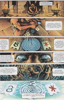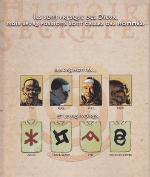 remarques: | genre fantastique/heroic-fantasy, le développement de l'histoire selon Kordey/Pecau est d'ailleurs assez difficile à suivre, il y aurait deux histoires selon Balzac: - l'histoire officielle = menteuse et - l'histoire secrète avec les véritables causes des évènements, mais celles-ci sont parfois difficiles à discerner dans cette série, toutefois la série propose des morceaux historiques quelque peu inédites qui dégagent un certain charme et intérêt (voir aussi notes supplémentaires détaillées en fin d'article) n.b. parmi tous les thèmes choisis dans l'histoire, curieusement celui de la bataille de Waterloo n'a pas été sélectionné; vu les points obscurs et non éclaircis par les historiens concernant cette bataille, il aurait été intéressant de l'analyser dans l'histoire secrète, mais les auteurs n'en ont pas voulu (à ce propos voir l'excellent livre Waterloo l'évitable défaite par Jacques Logie) dans cet album, le thème principal est Moïse, les hébreux et la traversée de la Mer Rouge, 3000 ans avant notre ère, un chaman remet à 4 frères et sœurs 4 cartes d'ivoire possédant chacune un pouvoir immense, mais la règle est claire: en aucun cas les quatre cartes ne doivent être utilisées en même temps et chaque frère et sœur ne devra avoir en sa possession qu'une seule carte 4 ivoires pour 4 archontes, 4 archontes pour diriger le monde mais malheur aux hommes si un seul possède les quatre en fait cette règle va être bien vite violée, d'abord par vengeance, ensuite par envie de pouvoir 1600 ans plus tard, en Egypte, la guerre est ouverte entre les deux frères Dyo et Erlin pour le contrôle des cartes, Dyo s'étant allié au pharaon, Erlin protégeant quant à lui les hébreux persécutés générés par le pouvoir des cartes, les pires fléaux vont alors ravager l'Egypte, les quatre archontes se voient destinés à gouverner le monde avec leurs quatre ivoires: - Dyo, l'ivoire de la coupe = pouvoir surnaturel, guérison - Reka, l'ivoire de la lance = arme puissante - Aker, l'ivoire de l'épée = arme puissante - Erlin, l'ivoire du bouclier = défense attaque de la division thot de Dyo par un feu liquide, contre-attaque de la forteresse d'Erlin par le déluge alors qu'à Kerma, Reka la lionne règne en déesse Dyo veut laisser les hébreux de Moïse être massacrés avec l'aide de pharaon alors que Erlin défend les hébreux, les armées de Dyo sont sur le point de l'emporter, mais Moïse réussit à ravir à Dyo son pectoral d'ivoire >> p. 36 l'attaque des sauterelles les hébreux réussiront à percer le cercle des Ashabas de Dyo et à gagner la Mer Rouge qui s'ouvre grâce à l'ivoire ravie à Dyo, entretemps les deux soeurs Reka et Aker se séparent car Dyo a brisé leur alliance en combattant Erlin >> premier tome d'une série de 37 volumes, le dernier avec le titre Atlantide (2024) mais seuls sont collectionnés ici les 13 premiers volumes, la lecture de la suite de l'histoire secrète devenant de plus en plus lassante, chaque volume traite d'un épisode de l'histoire secrète "historia occulta" sur l'histoire du monde mais l'histoire bien que peut'être secrète n'est pas toujours de grand intérêt ni le graphisme très élaboré n.b. les albums originaux présentent une couverture avec sélectif brillant sur fond mat les titres des 22 derniers albums: - tome 14 (2008) les veilleurs - tome 15 (2009) la chambre d'ambre - tome 16 (2009) Sion - tome 17 (2010) opération Kadesh - tome 18 (2010) la fin de Camelot - tome 19 (2010) l'âge du verseau - tome 20 (2010) la porte de l'eau - tome 21 (2011) le mahdi - tome 22 (2011) le roi du monde - tome 23 (2011) absynthe - tome 24 (2011) la guerre inconnue - tome 25 (2012) l'ange paon - tome 26 (2012) l'amiral du diable - tome 27 (2012) santa muerte - tome 28 (2012) la ville aux mille piliers - tome 29 (2013) opération Bojinka - tome 30 (2013) ground zero - tome 31 (2013) les maîtres du jeu - tome 32 (2013) apocalypto - tome 33 (2016) Messie blanc - tome 34 (2017) Messie noir - tome 35 (2019) Roswell - tome 36 (2021) les 7 tours du diable - tome 37 (2024) Atlantide Atlantide, c’est sur ce titre que s’achève l’odyssée des Archontes, conçue en 2005 comme un spin-off d’Arcanes et d’Arcane majeur, la série a acquis depuis une dimension qui a fait de l’ombre à ses ainées, de Genèse à ce trente-septième album, Dyo, Reka, Aker et Erlin ont ainsi parcouru et tenté de manipuler plus de cinq mille ans d’humanité les tenants de la thèse de la conspiration se réjouiront de constater que l’Histoire est bien façonnée par le combat de forces obscures, tandis que ceux qui sont persuadés de l’impossibilité d’infléchir le fil du temps seront confortés dans leur approche, l'histoire secrète réussit donc à combler les uns et les autres grâce à l’habileté de Jean-Pierre Pécau si ce que d’aucuns considèrent, à tort, comme une "BDnovela" ne modifiait pas fondamentalement le cours des choses tel que nous l’appréhendons, il faut cependant reconnaître que les luttes fratricides des quatre familles savaient remettre quelques faits historiques notoires en mémoire, tout en modifiant singulièrement la manière de les aborder la série avait été pensée pour des parutions rapprochées et plusieurs dessinateurs devaient initialement se relayer pour maintenir une fréquence de sortie soutenue, si Geto et Goran Sudzuka ne firent qu’un passage éclair sur Le Graal de Montségur, à l’instar de Léo Pilipovic qui n’intervint que sur les clés de Saint Pierre et 1666, Igor Kordey est celui qui œuvra sur le reste de la saga, capable de produire au moins deux albums par an (ce qui lui fut souvent reproché), néanmoions il a su imprimer un style puissant qui sort du convenu et sait capter l’attention, ici, l’important est à rechercher dans la tension qui se dégage des planches et non pas dans la précision des vignettes l’Histoire secrète est une séri