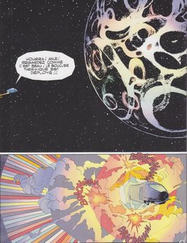 remarques: | tome 24: Zenobia, personne ne sait dans quelle partie de l'univers cette planète gravite et pourtant tous en parlent, voyageur, si le hasard te conduit à proximité, passe ton chemin ou perds tout espoir le vaisseau d'argent est à la dérive, les androïdes, compagnons d'Axle (le prof Matt Gammone, Roll, Roby et Jamy) sont en létargie, Axle est absent, le robot-alerte réveille Matt au même instant, le Prince des Eternautes et son conseiller Aganovanépanoé, arrivent près du vaisseau d'argent et demandent à être reçus par Axle, ceci pour recevoir des nouvelles de Musky, en l'absence d'Axle, c'est Matt qui le reçoit et qui lui apprend que Axle a disparu lui-aussi le Prince ordonne à Matt de retrouver les traces d'Axle, Matt constate que Axle a quitté le vaisseau d'argent avec une barge en compagnie d'une Zenobe de Zenobiophage du Kalmyrh (zenomb = cerveau et phagein = manger) qui lui a promis le bonheur perdu sur Zenobia le Prince des Eternautes devine aussitôt le danger qui menace Axle et tous se rendent sur Zenobia pour tenter de le sauver >> p. 14 arrivée au quartier sud de Zenobia (un bordel) où les Zenobes qui détiennent le secret des formules magiques qui asservissent les âmes des mâles en les embrassant et en les pénétrant (genre "alien"), le Prince des Eternautes arrive juste à temps pour tirer Axle de leurs emprises >> p. 20 les Zenobes-Aliens dont une qui a été neutralisée le Prince découvre rapidement que cette opération d'amour anthropophage a été manipulée par la Guilde qui veut absolument éliminer Axle et Axle se trouvant hors de son vaisseau, la Guilde prépare immédiatement une opération pour exécuter Axle, mais le Prince s'interpose et se sacrifie pour Axle en lui demandant en contre-partie de retrouver Muskie et de lui remettre les 3 graines d'éternité du Prince afin que celui-ci puisse renaître dans le futur Axle échappe in extremis à la Guilde à l'aide d'un "charognard" de Zenobia qui réussit à corrompre une partie de la garde pourpre et à faire revenir Axle et Matt sur le vaisseau d'argent, Axle se prépare maintenant à récupérer Muskie dans le monde parallèle >> p. 25 la Guilde pour qui Axle, en recherchant Muskie, représente un danger pour l'équilibre des deux mondes >> p. 38 un Axle vraiment dégueulasse >> p. 44 le bouclier thermique qui protège le vaisseau d'argent n.b. - résumé et explications sur Musky et Muskie (p. 8 et 27) - les 3 portes permettant de pénétrer dans le monde parallèle: 1) celle contrôlée par la Guilde 2) celle établie par Korian, père d'Axle 3) celle du caisson mise peut'être par le grand Médiat à la disposition d'Axle >> un bon album sans toutefois de grande surprise mais avec un scénario qui tient la route, la saga du vagabond continue avec une nouvelle bonne base et le graphisme est toujours de bonne fracture |
