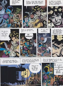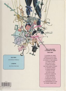 remarques: | collection: le vagabond des limbes présente (parodie de la série), deux volumes parus à Gygangnygognya, planète des Eternautes, arrivée de la "smahallah" des Romanyschells alors que Musky, princesse éternaute s'ennuie à mourir, elle fait sa première fugue mais sera ramenée par les romanyschells (qui ne sont donc pas des voleurs d'enfants) chez son père, on décide alors de fissiparturer les 10 ans de Musky, celle-ci n'est pas d'accord et sème l'h'narchie >> p. 15 h'narchie = mauvaise graine qui s'enflamme spontanément au contact de l'eau bônite lors de sa troisième fugue, Musky tombe sur Axle, le vagabond d'Zytanu qui l'emmène avec lui dans son vieux quatre-temps au pays sauvage de l'Amajolie, aventures chez les Bragandbrok qui ont un enfant dans le ventre (des ventriloques) >> p. 36 prototype d'un parfait bragandbrok mais finalement, Musky sera repêchée par un vaisseau de son père, Zytanu sera remercié et la vie continue sans surprise pour Musky et son nounours Agapapatoe >>> parodie burlesque et comique du vagabond des limbes sans aucune prétention, mais assez charmant et avec un bon graphisme n.b. un prochain volume avec le titre "une étoile pour deux" était annoncé mais ne paraîtra pas et ce sera remplacé deux mois plus tard par un 2ème album titré "les 13 transgressions" |