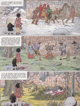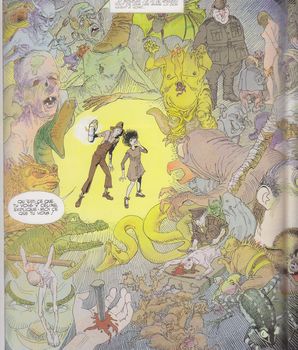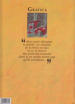 remarques: | cet album ne fait pas partie de la série du vagabond des limbes, mais produit par le duo Ribera/Godard reste dans ce genre l'histoire de deux orphelins, Thom et Bisouche, durant la guerre, envoyés chez leur oncle dans la campagne, Thom est autiste, il ne parle pas, il ne veut pas grandir, mais il voit des choses que les autres ne voient pas, Bisouche, elle, possède le don de manipuler les objets à distance quand elle se sent menacée >> p. 10/11 en route à pied pour rejoindre leur oncle >> p. 16 la résidence de oncle Hornicar >> p. 22 oncle Hornicar qui ressemble beaucoup à un vampire et oncle Hornicar entretient des relations mystérieuses avec l'occupant par la suite, Bisouche rencontre le jeune gars "grand sifflet" qui commence à lui plaire et Bisouche délaisse le petit Thom qui disparait, avec Hornicar et ses chiens, Bisouche part à sa recherche, mais Thom reste introuvable Bisouche demande alors à "grand sifflet" de l'aider à retrouver Thom, entretemps, ils font l'amour et les secousses de Bisouche font trembler les murailles de la résidence de Hornicar puis tous deux partent à la recherche de Thom dans les souterrains de la résidence >> p. 44 la muraille de crânes humains et Bisouche se rend compte que Thom est tombé en enfer fin du premier épisode et il n'y aura pas de suite à cette nouvelle série avec comme conclusion, fin de la série "mission accomplie" n.b. pourquoi le titre "je suis un monstre"? (plutôt une victime) >> probablement un album expérimental par le duo Ribera/Godard, le graphisme n'est pas très recherché et le scénario de Godard difficile à la compréhension, on ne sait pas bien quel but poursuivaient les auteurs, en tout cas un album vraiment hors-série |