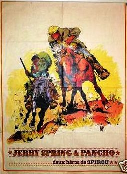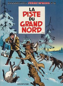 remarques: | album en deux épisodes 1) la piste du grand nord (réédition) en mission dans un pénitencier, Jerry Spring rencontre un détenu qui proclame son innocence dans un meurtre, début de l'enquête de Jerry sur l'affaire Hawkins >> p. 8 visite au North Fork ranch où vivent la femme et le fils de Hawkins protégés par les indiens de Petit-Loup après avoir éliminé le premier meurtrier: Joseph Le Fou = un fourbe métis, Jerry et Pancho se lancent dans le Grand Nord canadien sur la piste du principal meurtrier aux cheveux roux, les chevaux sont échangés contre des chiens et après avoir été renseigné par l'indien "bois brûlé", l'homme aux cheveux roux est rejoint et arrêté, ce qui arrange bien les affaires de Hawkins >> p. 23 Jerry qui continue la poursuite à ski 2) l'or du vieux Lender (scénario Goscinny) retour du nord au sud, meurtres mystérieux à San Felipe, l'histoire de la mine d'or de Lender, le shérif est soupçonné, mais finalement c'est le principal intéressé, Lender, l'actionnaire principal de la mine, qui est l'auteur des meurtres, >> petite énigme policière de western >> 2 épisodes assez banals avec un graphisme respectable, mais Jijé est décidement plus un bon dessinateur qu'un éminent scénariste |