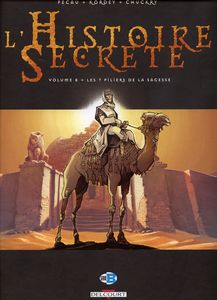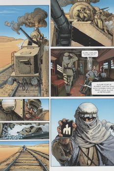 remarques: | début du 2ème cycle 8ème volet: avec Lawrence d'Arabie comme sujet principal, 1918, la guerre dans le désert, Arabie, Alexandrie et Jerusalem (partagée entre les 4 archontes Aker = arménien, Erlin = juif, Dyo = musulman et Reka = chrétien), génocide arménien, Caucase thème principal: guerre du désert et Lawrence d'Arabie nouvelle page de garde avec 5 archontes: Dyo, Reka, Aker, Erlin et Guillaume de Lecce (dont les profils ont quelque peu changé par rapport au tomes précédents) avec leurs agents: Saint-James Philby (Guillaume), Itzak (Aker), Curtis Hawk (Reka) et Rudolf von Sebottendorf (Guillaume) n.b. il semblerait que Erlin et Dyo n'ont pas d'agents (Philby ayant quitté Dyo pour Guillaume) Delphes, 1908, en implorant la pythie, Rudolf von Sebottendorf déclanche un éboulement; par la suite, il se sépare d'un rabbin ainsi que du juif Itzak travaillant pour Aker et qui deviendront ses ennemis désert d'Arabie, 1918, James Philby avec l'autorisation de Abd al-Aziz ben Abd al-Rahman abd Seoud, d'Arabie Saoudite, découvre les mines de la ville de Kor, ville de la reine de Saba, ville de démons où Philby trouve les cartes d'une famille perdue qui lui procurent une grande puissance >> p. 13/14 de belles planches sur la cité de Kor Alexandrie, 1918, Curtis rencontre Reka et le général Kitchener, Curtis a pour mission de retrouver Philby avec l'aide de Lawrence d'Arabie mais les allemands de Dyo et les moines de Guillaume sont aussi sur les traces de Philby >> p. 24 la cité de Babbulkund, cité des merveilles (voir plus bas) >> p. 29/30 le train blindé démoli par Philby qui veut devenir lui-même un archonte et prendre part à la révolution sociale russe, le refuge de Philby est découvert, mais l'oiseau s'est envolé Caucase, Arménie, 1919, Philby est retrouvé par Curtis et Reka avant qu'il puisse faire alliance avec Guillaume de Lecce pour soutenir la révolution russe, Guillaume désespère de ne pas pouvoir acquérir la boite noire de Philby dont le contenu serait des ivoires noires qui provoque le mal et le chaos entretemps le rabbin et Itzak étudient à Tchernobyl le dessin d'une "Hakenkreuz" = croix à crochets formée avec des étoiles de David >> un album quelque peu moyen qui se perd dans le sable d'Arabie et la neige du Caucase malgré la présence du fameux Lawrence d'Arabie qui n'a d'ailleurs pas grand chose à faire dans ce récit Information - Edward John Moreton Drax Plunkett, dix-huitième baron de Dunsany, est un écrivain irlandais né le 24 juillet 1878 à Londres et mort le 25 octobre 1957 à Dublin, ses œuvres sont publiées sous le nom de Lord Dunsany, auteur de nouvelles, romans, pièces de théâtre, poèmes et essais, il est considéré comme l'un des fondateurs de la fantasy moderne - la cité de Babbulkund est mentionnée dans son roman: "l'épée de Welleran" (the sword of Welleran) écrit en 1908 |