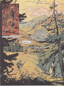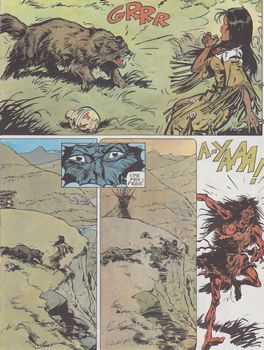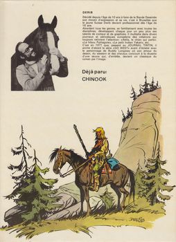 remarques: | Buddy et Chinook ont trouvé leur vallée où s'établir, construction d'une cabane, mais déjà une présence hostile rôde autour d'eux >> p. 5 la vallée choisie par Chinook >> p. 11 la cabane est enfin terminée Buddy cherche alors à débusquer l'ennemi invisible, il se rend compte qu'il s'agit d'un grand carcajou, genre de glouton féroce et rusé qui défend son territoire, mais il y a aussi un autre être qui se cache entretemps visite de Slim-le-borgne à qui Buddy raconte son histoire >> p. 33 découverte du tombeau indien (couverture de l'album) Buddy réussit à débusquer le carcajou, mais celui-ci accule Chinook à un précipice et elle ne sera sauvée que par l'intervention du vieil indien Ours Gris >> p. 43 la lutte d'Ours Gris avec le carcajou qui avait tué sa squaw, Lys des Prés, et Ours Gris qui avait perdu l'esprit à la mort de sa femme, avait crû reconnaître Lys des Prés dans Chinook tout le monde se quitte avec grande amitié alors que Chinook attend maintenant un enfant >> l'histoire se développe admirablement et le graphisme reste superbe |