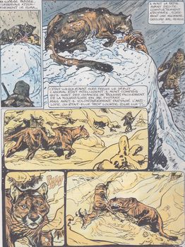 remarques: | problèmes d'éducation avec Kathleen >> p. 7 l'érotisme commence à se manifester dans les albums alors que Buddy prend un coup de vieux l'escapade de Kathleen qui tombe malade et pour la guérir, Buddy lui raconte d'anciennes histoires de chasse (des récits rétroactifs) 1ère histoire: la mystérieuse apparition de l'ourse sorcière et les bons conseils de loup noir, le black feet 2ème histoire: la part des chasseurs ou la coopération avec le puma handicapé 3ème histoire: apprentissage de chasse pour Buddy (premier graphisme de Derib sur Buddy) "tout noir" le poulain de la jument sauvage devient le cheval de Kathleen >> p. 27 la légende de l'ourse sorcière qui se transforme en jeune et belle squaw pour attirer les chasseurs >> p. 46 les Crows n'ont pas l'air de connaître le noble art de la boxe >> un album moyen et intermédiaire dans la série tant pour le graphisme que pour les récits |