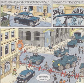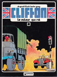 remarques: | apparition d'un deuxième constable: Flatfoot cette fois Clifton a affaire aux agissements spectaculaires du voleur qui rit et qui annonce toujours ses intentions à l'avance, mais Clifton découvre que c'est une stratégie pour opérer un plus grand coup: celui de la banque Plentyfull et Clifton arrivera à arrêter Hotshot Carmody, le voleur qui rit >> p. 9 la salle de cinéma blindpeople >> p. 13 Clifton à l'hôpital qui demande son pantalon à l'inspecteur principal Strongtooth et au lieutenant Hardfeeling >> p. 30 le parapluie multi-fonction de Clifton deuxième petit épisode: - le mystère de la voix qui court les détroussements effectués par Lord Barnaby Decaywreck à l'aide de gadgets électroniques qui seront vite démasqués par Clifton >> p. 44 l'inspecteur Maigret (Bougret chez Gotlib) avec bon sang (good blood), mais c'est bien sûr >> un album plutôt moyen, surtout pour le deuxième épisode moins bien conçu et moins bien dessiné, le scénario de Greg n'est pas le meilleur, mieux vaut encore le laisser faire au tandem Groot&Turk |