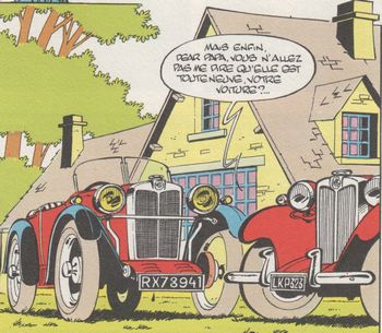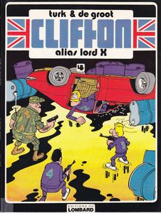remarques: | album en trois épisodes. 1) alias Lord X le couloir 12 dit "des affreux" de la prison de Newgate Forthebirds, l'évasion farfelue de Jeroboam Tyke organisée par Clifton alias Lord X (en cheveux noir au lieu de blond) pour pouvoir infiltrer le gang du "cervelet" et empêcher le hold-up du siècle: la collection de Rolls Royce en or massif de l'émir Kheir Ozen >> p. 7 pour arrêter l'action de la police, rien ne vaut que d'entamer le "God save the Queen" >> p. 15 parodie de Goscinny? 2) les émeraudes se font la malle "Waterproof", centre de vacances pour millionaires, dirigé par Fishstick, ami de Clifton qui fait appel à ses services pour retrouver les émeraudes de Lady Applepie, volées dans l'intérieur du coffre par des pinces téléguidées depuis une sacoche qui y est entreposée, les pinces étant téléguidées à distance (n.b. une bonne idée) et Clifton a cette fois un petit peu de concurrence avec le détective américain Halfdime 3) roue libre on a volé la voiture de papa Clifton, un général, mais suite aux déductions de Clifton junior, un colonel, celle-ci sera vite retrouvée >> les différentes voitures avec plaques d'immatriculationd: celle de papa Clifton RX 78941 et celle du colonel Clifton LKP 323, une MG décapotable rouge n.b. si Clifton junior est déjà à la retraite, Clifton senior doit avoir un certain âge >> p. 48 la bande dessinée = de petites histoires illustrées qui paraissent pour le plaisir des enfants et des adultes attardés >> des aventures toujours bien britanniques, assez subtiles mais pas trop |