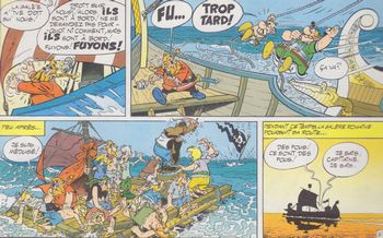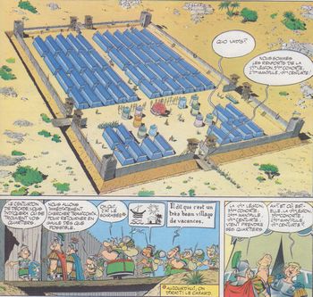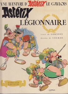 remarques: | dernier titre: le devin Obélix tombe amoureux de Falbala, mais celle-ci est déjà fiancée à Tragicomix, enrôlé de force dans la légion romaine en Afrique, mais Idéfix lui n'aime pas Falbala, toutefois >> p. 12 Obélix devient très malheureux à cause de Tragicomix tandis que >> p. 13 Idéfix reste avec Falbala qu'il finira par adorer Astérix et Obélix décident de partir à la recherche de Tragicomix >> p. 15-17 confrontés à l'administration romaine à Condate (Rennes) et pour retrouver Tragicomix, Astérix et Obélix s'engagent dans la légion romaine >> p. 21 le légionnaire belge qui ressemble à Tintin >> p. 26 Astérix et Obélix sont affectés à la 1ère légion, 3ème cohorte, 2ème manipule, 1ère centurie >> p. 25 la tactique d'Astérix pour gagner les faveurs du cuisinier de la légion sous la direction d'Astérix, la légion embarque à Massilia pour Thapsus en Afrique où se trouvent César et Tragicomix >> p. 32 l'arrivée à Massilia >> p. 35 durant la traversée, retrouvailles avec le navire d'Eric le Rouge qui devient le radeau-pirate de la Méduse >> p. 37 l'état-major de César dont Pierre Tchernia >> p. 40 "nous sommes fous les romains" dixit Obélix finalement Astérix délivre Tragicomix prisonnier de Scipion, général rénégat, et par son action apporte la victoire aux légions de César qui leur accorde des honneurs militaires et leur permet de regagner la Gaule, retour chez Falbala et banquet final sans la participation d'Astérix qui à son tour est tombé amoureux de Falbala >> un bon album, un poil moins bon que les précédents mais toujours un superbe graphisme (coloriage et dessin p. 21), histoire d'amour mais aussi petite critique de l'armée n.b. Tragicomix ressemble beaucoup à Jean Marais dans ce récit et copié sur le chevalier Belloy créé en son temps par Uderzo Information - Arys Buck est un personnage de fiction créé par Albert Uderzo, héros de l'histoire: Arys Buck et son épée magique publiée dans l'hebdomadaire O.K. no 28 à 42 de décembre 1946 à avril 1947 - Arys Buck est un jeune homme à la force herculéenne qui combat divers opposants avec l'aide de son fidèle adjudant: le nain Castagnac, Buck épouse la princesse Sogdiane, avec qui il a un fils: Rollin, lui-même père de Belloy |