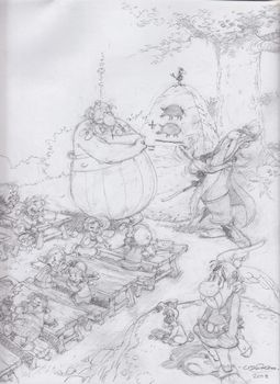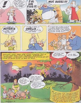 remarques: | édition 2003, deuxième version, album Hors-Série prologue de l'éditeur (Albert Uderzo) sur la réédition de cet album provenant de diverses sources dont le journal Pilote, 16 petites histoires dont quatre réalisées par Uderzo après la mort de Goscinny en 1977 "le tandem le plus célèbre de la BD mondiale", Uderzo dixit 1/ la conférence de presse d'Abraracourcix (avec changement à l'avant-dernière case) 2/ la rentrée gauloise 1966 Goscinny+Uderzo, Pilote no 363 3/ la naissance d'Astérix, 35 avant J.C. 1994, Uderzo les parents d'Astérix et d'Obélix, pour Astérix: Praline et Astronomix pour Obélix: Gélatine et Obélodalix, la boutique d'Oftalmologix, père d'Ordrafabelix 4/ en 50 avant J.C. (Jules César) 1977 Goscinny+Uderzo explication sur la série Astérix pour le marché américain (via National Geographic en 1977) et les raisons de la publication limitée aux USA des aventures d'Astérix (une raison de format d'image à l'américaine) 5/ Chanteclairix 2003 Uderzo le coq gaulois (gallinarius minus) en hommage aux quelques illustrations de poules et de coqs glissées furtivement dans les dessins de Uderzo 6/ au gui l'an neuf 1967 Goscinny+Uderzo, Pilote no 424, les charmantes coutumes gauloises 7/ mini midi maxi 1971 Goscinny+Uderzo dans "Elle" no 1337 sur les femmes gauloises 8/ Astérix tel que vous ne l'avez jamais vu 1969 Goscinny+Uderzo, pilote no 527, essais sur la série Astérix 9/ Lutèce olympique 1986 Uderzo dans "Jours de France" récit publicitaire pour la candidature des jeux olympiques à Paris 10/ le printemps gaulois 1966 Goscinny+Uderzo, Pilote no 334, le printemps fait disparaître l'hiver grâce à la potion magique 11/ la mascotte 1968 Goscinny+Uderzo, Super Pocket Pilote no 1, petite nouvelle sur Idéfix 12/ Latinomanie 1973 Goscinny+Uderzo expressions latines, campagne contre le franglais et première version de la "rentrée gauloise" en 1993 13/ les auteurs en scène 1963 Goscinny+Uderzo l'épigramme: vis comica = le pouvoir de faire rire 14/ Obélisc'h 1963 Goscinny+Uderzo, Pilote nos 172 à 186 Goscinny et Uderzo retrouvent un descendant d'Obélix qui leur montre l'arbre généalogique d'Obélix 15/ où vont-ils chercher tout ça? 1993 Uderzo 16/ naissance d'une idée 1962 Goscinny+Uderzo, Pilote no 157 >> un album retro avec des hors-séries en partie inédites qui certes font revivre l'épopée d'Astérix mais qui n'apporte guère plus d'eau au moulin Astérix à part quelques épisodes intéressants, mais qui rappellent surtout que le mythe Astérix perdure en 2003 depuis maintenant 40 ans annexes - couverture de l'album 2003 avec esquisse - couverture de l'album 1993 - extraits tirés de l'album |