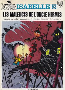 remarques: | scénario: Macherot, Franquin et Delporte album en 2 épisodes: 1) les maléfices de l'oncle Hermès Isabelle et sa tante Ursule sont convoquées par l'oncle Hermès, prisonnier d'une flamme, pour le tirer d'un mauvais sort imaginé par l'horrible sorcière Kalendula >> p. 4 la maison de l'oncle Hermès >> p. 8 Isabelle est la digne arrière-arrière petite-fille de son arrière-arrière grand oncle Hermès sur leur chemin, les difficultées s'accumulent mais grâce à Calendula, la gentille jolie nièce, de Kalendula la vieille, qui prend parti pour Isabelle et Hermès, le maléfice sur oncle Hermès sera conjuré 2) l'île dont on ne revient pas malencontreusement, Isabelle ressucite l'horrible sorcière Kalendula qui fait échouer nos 4 amis sur une île dont on ne revient pas, rencontre sur l'île avec le vieux amiral qui est retenu prisonnier sur l'île depuis 40 ans (on apprendra par la suite que c'est le mari de Kalendula) surveillé par les deux oiseaux de proie: Quantustremor et Futurus après plusieurs tentatives d'évasion infructueuses, nos amis réussiront à s'évader mais la vieille horrible Kalendula leur échappe en s'enfuyant sur son char des eaux >> p. 44 l'île flottante, mouvante et vivante >> l'action se précise et devient charmant et plus intéressante avec un graphisme bien exécuté n.b. c'est le premier album édité de la série, les albums no 1 et 2 seront publiés plus tard et seront moins intéressants |