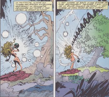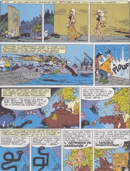 remarques: | scénario: Macherot, Franquin et Delporte l'oncle Hermès s'empare du diamant de Vrastolav II pour pouvoir fabriquer une astragale ( = plante et os du pied, mais ici c'est un diamant magique) alors que l'horrible sorcière Kalendula prépare sa vengeance en réactivant le chuintufle (un genre de marsupilami) et elle utilise aussi l'indicible magnificateur du globe de nacre pour retrouver la trace de l'oncle Hermès qui lui a entretemps inventé l'astragale de Cassiopée = une ceinture fantastique qui rend tout personne amoureuse de celle qui porte l'astragale >> p. 8 l'affreux chuintufle >> p. 11 pas dénuées de tout sens les aventures d'Isabelle et même un peu coquin >> p. 14 brève apparition de Kiki qui se fait déshabiller par le chuintufle la vieille Kalendula se transforme alors en jolie jeune fille, elle parvient à s'emparer de l'astragale et à rendre l'oncle Hermès amoureux d'elle >> p. 21-24 la métamorphose de la vieille Kalendula Isabelle fait alors appel à Calendula, la nièce de Kalendula qui grâce à ses pouvoir magiques et à l'aide des loulous de mer réussira à récupérer l'astragale et à délivrer l'oncle Hermès juste avant que la vieille Kalendula ne soit mariée officiellement par l'archigloubl avec l'oncle Hermès et en combinant leurs pouvoirs, Calendula et Hermès transformeront la vieille Kalendula (qui avait pris l'apparence d'une jeune femme) en une statue de bronze dans le bassin du parc des Hespérides >> p. 38 le prêtre archigloubl >> p. 46 même transformée en statue de bronze, Kalendula reste bien posée n.b. la différence entre la bonne Calendula (chevelure verte) et la mauvaise Kalendula (chevelure blonde) >> un album tout à fait dans les cordes des aventures d'Isabelle, un scénario soigné et un graphisme à nouveau parfait l'album est vraiment une petite merveille et un des mieux réussis de la série |