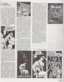 remarques: | 1) petit interview avec Boucq by T. Smolderen, L. Delisse + Groenstein et Delperdange, meilleur album de Boucq: la femme du magicien avec Edouard le magicien = un personnage faustien, Boucq = dessinateur exprimant des excroissances incontrôlées de l'âme humaine et aussi de la cruauté de l'homme (regard critique) avec le scénariste Charyn = le maître du psychodrame 2) entretiens avec Wasterlain by Thierry Groenstein - né en 1946, débute comme assistant d'Attanasio, puis travaille aussi avec Peyo, premiers dessins dans Spirou en 1976 avec Dr. Poche, suivi de Jeannette Pointu en 1982 (une journaliste un peu lesbienne) - considère Franquin, Hergé et Tillieux comme ses maîtres - travaille aussi avec Forest pour le journal Okapi (la machine perplexe) 3) Wasterlain avant le Dr. Poche by D. Fano - premier album "la planète des clowns" sur inspiration de Forest (Barbarella), puis "Monsieur Bonhomme" série plutôt burlesque et champ d'expérience pour Wasterlain 4) Dr. Poche et la loi des séries by Thierry Groenstein - la loi des séries = contraintes imposées aux auteurs de BD) dont: a) unité du personnage (l'éternel retour de l'héros) b) unité du genre (une série doit se réclamer d'un genre spécial, exemple le western) c) unité de longueur (nombre de pages précis pour la parution en album, 44 ou 46 pages ni plus ni moins) d) le noyau invariant (comportant des éléments diégétiques, c'est à dire spatio-temporels = concordance des épisodes, ceci en plus des constantes narratives et stylistiques) - cette loi obéit toutefois à une logique purement commerciale (voir aussi l'ouvrage "la BD depuis 1975" by Thierry Groenstein 1985) - Wasterlain ne remplit pas trop ces conditions, l'homogénéité de la série n'étant pas souvent respectée, mais il possède par contre une grande richesse d'inventions (exemple la planète des chats dans la série dr. Poche) - la concordance (homogénéité) dans les récits qui peut enrichir une suite d'albums dans le développement d'une série 5) les sources du merveilleux by D. Hughes les récits de Wasterlain font partie du merveilleux avec le thème de l'enfance, dans dr Poche (monde du merveilleux), dans Jeannette Pointu (monde plus réaliste) 6) figuration sur mesure by J. de Pierpont - plusieurs centaines de personnages secondaires chez Wasterlain, parfois même taillés "sur mesure": les familiers, les loufoques, les special-police et fonctionnaires (= loufoques en uniforme), les mauvais, les bons métiers = les gentils, les petites gens = les classe populaires, les enfants, les êtres fantastiques 7) entre chien et loup by C. Brichant et T. Smolderen - les animaux dans la BD: chaque espèce d'animal correspondant à une organisation sociale spécifique (la planète des chats) - ces sujets animaliers ont d'ailleurs été dessinés aussi par de nombreux auteurs dont Macherot, Franquin et même Hergé - l'animal typique: le renard, associé au pouvoir maléfique et ténébreux 8) Jeannette Pointu by Luc Delisse et Karann Guilbert - la journaliste féministe dont Wasterlain nous fait souvent subir la pseudo-mort au milieu d'un album dans l'exercice d'une bonne action, dissertation sur l'album "le dragon vert" 9) bibliographie de Wasterlain - dans Spirou 1975-1983 dr Poche (il est minuit dr Poche, la planète des chats) - dans Spirou 1982-1983 Jeannette Pointu (le fils de l'inca = similitude avec le temple du soleil) - dans Tintin 1971-1974 Lapomme, Pulpite, Gill et Georges, monsieur Bonhomme, Plouf et Pample 10) la BD dans le théâtre et l'opéra by Groenstein et de la Croix - théâtre: Carmen Cru et mentionné dans "silence" et "Gilles de Rais" - opéra: Nibelung, la flûte enchantée et avec Jacobs "l'opéra de papier" 11) les jeudi bénis de la BD en 1950 by Henri Kaufman 12) la BD selon Eisner by Thierry Smolderen - analyse plutôt sophistiquée sur la BD et notamment sur le style et l'oeuvre de Eisner 13) Hergé, philosophe? by Thierry Groenstein - dissertation du livre de Bourdil "Hergé, Tintin au Tibet" - exemple du verre de whisky supplémentaire dans les pages 16-18 du crabe aux pinces d'or - critique de l'analyse de Bourdil qui ne voit que de la psychologie là où il le veut et surtout dans l'album Tintin au Tibet, l'album le plus atypique d'Hergé 14) étude sur la BD USA by Thierry Smolderen - l'affaire Kirby contre la Marvel Edition (litige concernant les droits de propriété sur un personnage BD) 15) les éditions Glénat by Thierry Groenstein - succès du magazine "Vécu" (BD historique), mais échec de "Gomme" et continuation de "Circus" 16) entretiens avec Druillet by Thierry Groenstein - recherche d'autres champs d'activité que la bande dessinée - le désavantage de la BD: il n'y pas de son ni de musique - il a été le premier à organiser pour ces propres oeuvres une vente publique aux enchères chez Drouot le 4.7.1984 - la plupart des films tirés de la BD sont des navets - il aura mis 7 ans pour créer l'album "Salambô" - les éditeurs ont trahi la BD, la tonne de merde qui est éditée chaque année, dixit Druillet 17) la case mémorable by Michel Gheude, sémiologue (qui étudie les signes) - dans Mickey Magazine en 1954, la case avec Eega Beeva dans "la planète inconnue" (n.b. récit qui n'a pas été édité en album) 18) article sur Michel Duveaux by Sylvain Bouyer - né en 1951, le dessinateur de la destruction, de la désintégration et de la dégradation, graphisme noir et blanc avec images montées de photos et photocopies (ses oeuvres: Pierrot le Fou, Dakota 358, seins de marbre, Beyrouth) 19) Ric Hochet by T. Groenstein et L. Delisse - 30 ans de BD en 1985 et 41ème album: la maison de la vengeance, - Ric Hochet, détective à la Rafale, genre detective-story, son père Richard, sa nièce Nadine, le commissaire Bourdon, - d'abord publié en petites histoires dans Tintin puis en albums longue série, les scénarios sont de Greg, Charlier et Duchâteau - usage assez fréquent dans 