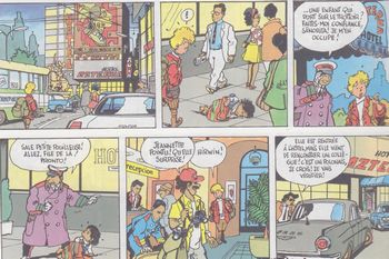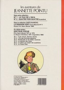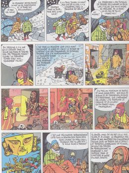 remarques: | Jeannette Pointu, la célèbre journaliste, en voyage dans la cordillère des Andes pour un reportage sur le Cerro del Condor (haut massif des Andes) >> p. 3 les quechuas des Andes encore meilleurs que les sherpas du Nepal Jeannette est confrontée avec une mytérieuse momie inca provenant d'un jeune enfant sacrifié au dieu soleil par les Incas >> p. 8 petite finesse en politesse et confesse >> p. 8 El Plomo, le cacique ou possible dernier descendant Inca lors d'une situation sociale explosive et exploitée par une organisation paramilitaire appelée "la main noire", Jeannette est arrêtée par la policia puis relâchée, elle rencontre alors le vieux indio Chico qui a trouvé le trésor de l'inca (dont la momie), s'en suit diverses mésaventures dont une entrevue avec le gouverneur Perez de la junte militaire >> p. 22 souriez colonel, mais je souris >> p. 24 l'histoire du petit enfant Inca sacrifié qui n'est toutefois pas une momie, mais qui a été pétrifié par le froid >> p. 27 la tombe de l'Inca le colonel Perez intervient avec l'armée pour s'approprier le trésor, mais le prêtre Inca El Plomo invoque la vengeance de Viracocha, dieu du soleil qui s'exprimera par un tremblement de terre involontaire >> p. 34 les grands propriétaires fonciers par la suite, Jeannette sera mêlée à une révolution provoquée par le tremblement de terre et rencontrera encore Jesus Rico, l'haciendiero et Maria Bona Bella, la guerillera >> p. 39 une humanité mal placée >> p. 40 on passe des Incas directement aux Jivaros >> le graphisme n'est pas terrible, mais le scénario est bien imaginé, mêlé d'actualité, d'humanité, de réalisme, de critique sociale, du moins jusqu'à la page 35, après c'est un peu du remplissage, le tout inspiré quelque peu de l'album d'Hergé, le temple du soleil Information Jeannette Pointu est une série de BD, créée par Marc Wasterlain dans Spirou en 1982 et publiée en 21 albums par Dupuis de 1983 à 2020 son héroïne éponyme est une journaliste que son métier conduit à faire des reportages dans le monde entier et dans des lieux aussi différents que les ruines atlantes, l'Amazonie ou la planète Mars, c'est selon Patrick Gaumer "une des séries les plus réussies des années 1980", inhabituelle dans le registre, parfois sclérosé de la bande dessinée tout public dans sa critique du troisième épisode de la série, le dragon vert, Thierry Groensteen y voit en 1984 une réussite éclatante qui atteste l'ampleur et la fécondité d'un talent encore largement méconnu, un exemple de la véritable bande dessinée adulte, il y loue la capacité de l'auteur à évoquer des problèmes politiques contemporains (guerre civile, trafic de drogue, corruption, malnutrition, etc.) sans tomber dans les écueils de la complaisance morbide, du didactisme sentencieux, du moralisme à bon marché et de la bonne conscience confortable; ainsi Jeannette Pointu tente d'aider certains individus sans prétendre changer le cours général des choses, de plus, l'album offre un personnage féminin convaincant et peu stéréotypé, bien que conforme à la tradition scoutiste et tintinienne du héros défendant les opprimés |