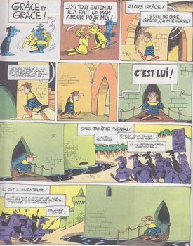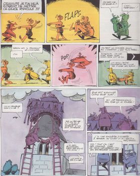 remarques: | la suite des aventures de Cellulite 1) l'artisan du bonheur apparition du délégué de l'artisanat et du petit commerce = Cid Unati dont Cellulite tombe amoureuse et veut absolument épouser Cid Unati est aussi un grand inventeur, mais il réussira à se débarrasser de Cellulite, poil au nez! >> p. 14 Gotlib est appelé à la rescousse >> p. 34 Cid Unati y perdra son poil au nez 2) peau de bique le fils gâté d'un roi voisin s'amourache de Cellulite affublée d'une peau de bique donnée par son père petite histoire tirée du conte "peau d'âne" 3) l'élu des histoires se rapportant à des élections payantes 4) bloustorie l'histoire du fils du roi Renaud qui n'épousera Cellulite que si celle-ci a la peau très fine, si fine qu'elle doit être marquée durant son sommeil par un petit pois mis sous sept matelats >> un album dans la moyenne et dans la lignée, toujours de bon aloi |
