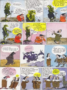 remarques: | Espagne au XVème siècle, les tribulations d'une mère de couvent = la Madre 1) la construction de couvents Theresa d'Avila à la recherche de fonds chez la douairière Prouhèze et son mari Rodrigo, rencontre aussi avec le pénitent Pierre d'Alcantara qui effectue un jeûne sordide (>> p. 20) 2) les chemins de la perfection jeux de martyrs, jeux de vilains 3) visite au couvent coquetterie féminine chez les nonnes via à vis de l'archevêché 4) exorcismes étude sur l'exorcisme et où la possédée n'est pas celle qu'on croit 5) el cartografo la conception d'un nouveau monde >> des épisodes assez bien imaginées, mais une critique virulente de la religion et de l'Eglise avec en plus quelques notions d'économie et de finance voir >> p. 8 |