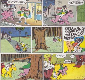 remarques: | l'album "avant la lettre était initialement le 11ème album de la série, dans les années 1980, elle a été renumérotée pour qu'il devienne le premier à noter que la série collectionnée ici est la première série, il y aura une deuxième série (2003-2013) avec des couvertures souvent différentes de la première série le tout début de Philémon, les origines de Philémon avec l'épisode du mystère de la clairière des trois hiboux, comprend le petit Fred illustré, album reclassé en 1978 comme tome no 1 Philémon découvre un monde du cirque camouflé sous terre et dirigé par un hypnotiseur qui recrute son monde de cirque dans les villages avoisinants (clown, trapéziste, dompteur, cheval-clown, tarte à la crème, etc), Philémon réussira à neutraliser les effets de l'hypnotiseur et de ses victimes grâce à des lunettes noires et un flacon d'éther >> des aventures très loufoques avec un scénario simplifié, mais déjà un bon graphisme plein de fraîcheur et d'enchantement, c'est le début des aventures de Philémon (avant la lettre) et premières démêlées avec Hector, père de Philémon n.b. à noter: le pullover blanc à raies bleues qui deviendra par la suite un pullover bleu à raies blanches, toutefois sur la couverture de l'album, Philémon porte déjà un pullover bleu à raies blanches Information Fred, de son vrai nom: Frédéric Othon Théodore Aristidès (né en 1931 et mort en 2013 à Paris) est un auteur de bande dessinée français, ses œuvres les plus connues sont le Petit Cirque, la série Philémon et l'histoire du corbac aux baskets Philémon est une série de bande dessinée de Fred apparue dans Pilote en 1965, son personnage éponyme se promène entre son village français et un monde fantastique où se trouvent notamment des îles formant les mots "OCEAN ATLANTIQUE" au milieu de l'océan de ce nom hormis le Diable du peintre dont les premiers épisodes ont paru dans Charlie Mensuel, toutes les histoires de Philémon sont parues dans Pilote et ses dérivés (Super Pocket Pilote, Annuel Pilote, Pilote & Charlie), Philémon est un adolescent de grande taille, large d'épaules, un peu voûté, son visage est allongé et il a les cheveux noirs, avec de longues mèches sur le devant, il porte toujours un pull rayé bleu et blanc, trop court, qui laisse voir son nombril, et un pantalon noir, il marche pieds nus, Philémon a un caractère doux et rêveur, par maladresse ou par gentillesse, il se retrouve mêlé à des aventures inattendues et emporté dans le monde onirique des lettres de l'Océan Atlantique dans cette bande dessinée, les personnages principaux qui accompagnent Philémon sont: - son père l'incrédule Hector, qui ne croit pas que le monde des lettres existe, même quand il y est lui-même précipité dans le voyage de l'incrédule - son oncle, Félicien qui l'aidera à voyager d'un monde à l'autre de différentes façons - son compagnon, l'âne Anatole, qui adore manger les chardons - son ami, Monsieur Barthélémy, le naufragé du "A", une espèce de Robinson, qui tentera par tous les moyens d'y retourner - le serviteur de Barthélémy: le centaure Vendredi, les manu-manu, des mains géantes qui se déplacent comme des chevaux le 17.1.2013 à Angoulême, lors de la conférence annuelle des éditions Dargaud au festival international de la bande dessinée, a été annoncé la fabrication d'un long métrage adapté de la série dessinée par Fred, ce dernier s'est montré enthousiaste lors de la projection de la première minute du film, c'est à cette occasion qu'a été annoncé le 16ème et dernier tome de la série, en juin 2013, paraîtra un magnéto dans l'assiette de Fred, un recueil d'entretiens entre Fred et son éditeur, ce sera aussi l'année du décès de Fred |