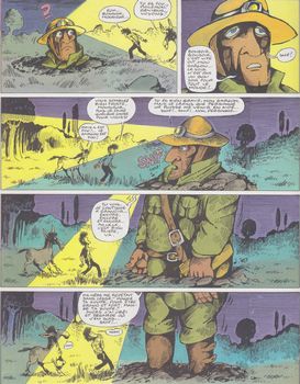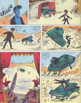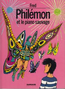 remarques: | apparition de l'oncle Félicien qui reconduit Philémon sur l'île du second A grâce à sa lorgnette magique après avoir fait du camping sur la mer, Philémon, pour avoir rebondi sur la pelouse de l'île du N, est condamné à affronter le piano sauvage durant le grand concert >> p. 21 dans le zèbre-geôle >> p. 23 une belle planche de soldats-papillons retrouvailles avec Barthélémy perdu dans le labyrinthe de l'hôtel du N, hôtel qui devrait communiquer par un couloir souterrain au labyrinthe du second A et retour sur le monde réel via l'armoire de l'oncle Félicien à nouveau deux épisodes supplémentaires: a) Barthélémy à la recherche de son ombre, le tailleur d'ombres lui en fera une trop petite et finalement Barthélémy se retrouve avec deux ombres (une histoire d'ombre à dormir debout) b) le spéléologue qui n'arrête pas de grandir parce qu'il mange de la soupe >> ce n'est pas encore l'extase, mais déjà un bon scénario farfelu et surtout un admirable graphisme avec une jolie couverture d'album |