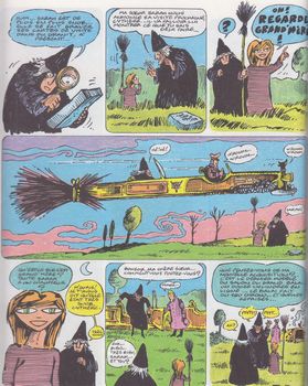 remarques: | album dédicacé par Fred avec dessin et comportant de nombreux courts épisodes: 1) la leçon de magie avec le balai magique et les métamorphoses 2) le prince charmant de l'étang (avec un très beau coloriage) 3) la flûte du temps qui peut modifier le temps 4) visite de Sarah, la socière-snob >> p. 26 l'arrivée de la sorcière-snob 5) le dédoublement de personnalité 6) la pêche à la lune 7) l'arbre mort à qui on redonne la vie, mais qui reste pessimiste 8) le fantôme du palais-mirage 9) le montreur timide de marionnettes 10) l'examen de Cythère par la reine de sabbat >> un album charmant et enchanteur avec un bon graphisme |