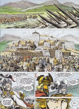 remarques: | 57 Av. J-C. César confirme sa domination sur la Gaule avec l'Armorique comme prochain objectif militaire alors que Ambre arrive en Bretagne où les réfugiés ne sont pas très bien accueillis Ambre prend le nom de Boadicae et devient la guerrière folle en faisant partie d'un groupe de trois funambules (Yorc le bateleur, Petit-Homme le géant et Beau-Visage le fourbe) >> p. 16 la lutte-pugilat entre les deux femelles >> p. 19 détails sur l'origine de Ambre qui serait Boadicae, la fille du roi icénien (= picte) Bror-le-Puissant, tué par son frère qui a pris le pouvoir entretemps, Celtill récupère non sans peine son fief de Gergovie et fait subir à son oncle Gobanicio le même traitement que celui-ci avait fait subir au père de Celtill >> p. 24/25 l'assaut sur Gergovie et >> p. 31 les tours d'assaut de son côté, Milon arrive à soustraire la petite Boadicae à la fureur de Didius et, tout en gardant l'enfant en otage, Didius demande à Milon de rencontrer César et de lui réclamer une rançon pour la petite, le chef de la cavalerie Publius Crassus soutient Milon, César leur ordonne alors de récupérer la petite Boadicae et de supprimer Marcellus Didius, quant à César il va préparer la conquête de l'Armorique sur les Vénètes, tandis que Boadicae, en route pour l'Icénie, continue sa tournée en avertissant les populations bretonnes des dangers d'une prochaine invasion romaine >> un assez bon album, l'épopée d'Ambre se poursuit, elle est peut'être une guerrière un peu folle mais surtout efficace, un scenario acceptable et un graphisme avec de nombreuses scènes de combats question: Garak le voleur borgne est-il vraiment mort? |