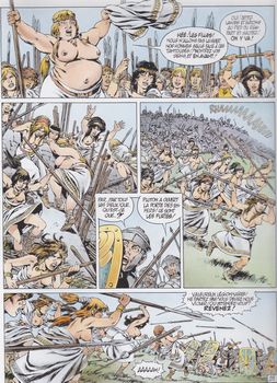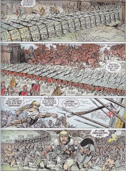remarques: | 52 BC siège de Gergovie, Ambre arrive en vue de l'oppidum et décide de rejoindre seule la forteresse déguisée en paysanne-bergère >> p. 5 le plan de Gergovie avec le castrum de César et le camp de Celtill >> p. 7 une curieuse bergère capturée par les romains, Ambre est sauvée par Milon qui lui permettra par la suite de rejoindre l'oppidum >> p. 14 le bain de César pour une fois, César est en difficultée suite à la défection de la cavalerie héduenne menée par les deux brenns Eporedorix et Viridomaros, César doit lever le siège de Gergovie, mais Celtill vainqueur n'exploite pas son succès et César arrive à se dégager tout en se dirigeant vers le nord pour rallier les légions de Labienus >> p. 28 la force de persuasion des gauloises >> p. 34/35 la retraite des romains sans se laisser piéger par les gaulois les deux adversaires ont toutefois besoin de renforts pour continuer les combats (pour César de la cavalerie, pour Celtill l'armée de secours) alors que Lucterios pour Celtill et Milon pour César tentent chacun de rallier Critovax à leur cause, mais Critovax se révèle être l'ignoble Marcellus Didius, rescapé, mais en piteux état qui s'empresse d'arrêter Milon qui, pour sauver sa vie, doit lui fournir des potions médicales afin d'améliorer l'état physique de Didius qui n'a pas encore décidé, si il prendra parti pour César ou pour Celtill, mais l'or de César sera le plus attractif >> un album moyen dans la série de Vae Victis, l'épisode avec l'ignoble Didius ressuscité n'est pas très convaincant, scenario et graphisme quelque peu en baisse, la fin de la série est proche et quelque peu vae victis pour le lecteur |