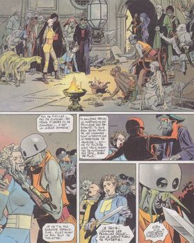 remarques: | dernier volet de la série avec un album dont les pages réduites à 45 arrivées sur Terra, Valérie et Rosemayor sont capturées par des mutants près de Veneuse, mais Elodie qui les poursuit en cachette échappe aux ravisseurs tandis que Christopher, Mara, Lisdal ainsi que le guide Ihill le Horlock se dirigent vers un bunker sous-marin enfoui dans les bas-fonds de la lagune de Malamocco (Veneuse = Venise) >> p. 8 Chris façe à façe à la cellule spatiale dont l'ouverture est déclanchée par le code mémorisé de Chris >> p. 9 un beau plan sur Rosemayor le coffre de la capsule s'ouvre et son contenu (des cultures bactériennes = l'arme absolue) devraient anéantir le germe causal du grand fléau, mais il faut encore atteindre l'organisme cellulaire pour lui inoculer le poison (insémination parasitaire dans le rhizome) Chris, Mara et Lisdal subissent quelques manipulations de leur métabolisme afin d'arriver sans dommage au repaire du grand fléau >> p. 15 explications sur le grand fléau qui existait déjà bien avant le paleozoïque dans les entrailles de la terre, mais que les expériences nucléaires au XXème siècle ont abouti à la réactivation du germe causal et les trois amis s'apprêtent maintenant à descendre dans les profondeurs de la terre jusqu'au cryptomère = l'organisme originel du grand fléau, celui-ci possède toutefois des défenses naturelles extrêmement dangereuses et agressives >> p. 23+26 les premières défenses naturelles du grand fléau entretemps, Rosemayor et Valérie, 2 baiseuses bien juteuses, sont amenées devant le dogue sérénissime, le dogue essaie de négocier avec Rosemayor tandis que Chris, Lisdal et Mara arrivent enfin au cryptomère, ils réussissent à le détruire mais dans son agonie, le grand fléau provoque des secousses sismiques Lisdal est le premier à mourir, puis Rosemayor >> p. 25 les défécations de Terra qui est le cul putride du cosmosest exécutée par le dogue >> p. 37 Rosemayor est décoeurée pendant que les secousses sismiques détruisent Veneuse; Elodie réussit à sauver Valérie, toutes deux seront récupérées par un aviso gouvernemental où se trouvent déjà Chris et Mara; le grand fléau est détruit, mais Terra agonise >> 5 ans après le dernier album, une fin quelque peu décevante tant pour le scénario que pour le graphisme, mais il est vrai que les naufragés ont fait maintenant leur temps et la série agonise aussi quelque peu après avoir livré quelques superbes albums et si Chris, Valérie, Mara et Elodie retournent dans leur épopée cosmique, la série s'arrêtera elle avec l'album "le cryptomère", cela aura été toutefois pour les 9 albums précédent, une des meilleures séries de bande dessinée |