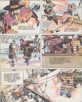 remarques: | Jérémie, le nouveau Corentin ou les aventures du Robinson adolescent seul sur la mer dans une chaloupe, il s'échoue sur une terre inconnue des Caraïbes, il est capturé par des aztèques qui veulent le sacrifier à leurs dieux barbares, il réussira à s'en sortir et est recueilli par un navire pirate qui détient comme otage, la toute jeune dona Aurelia Sanchez Espinoza, fille du gouverneur Espinoza de St-Domingue >> p. 14 une corde rudement bien employée mais lors d'une bataille navale et d'un second naufrage, Jérémie et Aurelia se retrouvent naufragés à nouveau sur une île déserte >> p. 44 seuls sur le vaste océan >> un scénario plutôt laconique et original, les personnages parlent peu, le récit sans bulle est raconté à la 3ème personne, mais un très beau graphisme n.b. décidément Gillon doit bien aimer les naufragés |
