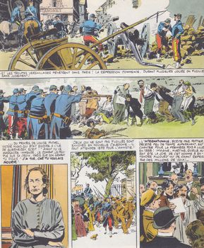 remarques: | préface de François Mitterrand socialisme = doctrine qui prétend à la régénération de la société 1820 Charles Fourrier qui dénonce l'injustice sociale 1840 Joseph Proudhon (l'individualiste teinté d'anarchisme), Karl Marx écrit le manifeste communiste, Auguste Blanqui et Jules Valles, combattants socialistes 1864 création de l'Association Internationale des Travailleurs 1870 écrasement de la Commune à Paris Jean-Baptiste Clément chante "le temps des cerises" 1888 l'Internationale Communiste écrite par Pottier 1889 le congrès socialiste adopte le 1er mai comme journée de la revendication du travail, Jean Jaurès fonde le parti ouvrier français 1894 principe de la grève générale 1901 le parti socialiste remplace le parti ouvrier 1907 droit au repos hebdomadaire (le dimanche) 1914 Jean Jaurès fait la guerre à la guerre, il est assassiné Léon Blum, disciple de Jaurès, décline la dictature du prolétariat 1919 Lénine fonde la IIIème Internationale création du parti communiste français "le Populaire" journal socialiste " l'Humanité" journal communiste 1934 la crise économique mondiale atteint la France Maurice Thorez, secrétaire du parti communiste contrats collectifs, pour la première fois des femmes participent au gouvernement 1936 gouvernement Léon Blum, Front Populaire, réformes sociales (semaine de 40 heures, congé payés, etc) 1937 Jacques Doriot créé le parti populaire français de tendance fasciste 1940 Pétain prend le pouvoir 1941 Léon Blum est arrêté 1944 De Gaulle prend le pouvoir 1946 Félix Gouin succède à De Gaulle 1947 Vincent Auriol, président de la IVème république Guy Mollet, scrétaire de la S.F.I.O. guerre d'Indochine 1946-1954 et d'Algérie (1954-1961) 1954 Pierre Mendès France met fin au conflit indochinois 1958 retour de Charles de Gaulle Guy Mollet premier ministre, Michel Debré, président de la Chambre, François Mitterrand apparait sur la scène politique, Fédération de la gauche contre De Gaulle 1968 en mai, émeutes estudiantines à Paris 1971 François Miterrand, secrétaire du parti socialiste Georges Marchais, secrétaire du parti communiste 1974 mort de Georges Pompidou Valéry Giscard d'Estaing, président de la république 1981 François Mitterrand, président de la république >> un cahier tout-à-fait intéressant malgré quelques commentaires un peu long, mais toujours un bon graphisme de Gillon |