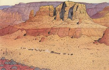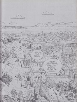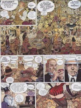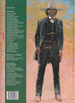 remarques: | retour de Blueberry 5 ans après l'album peu intéressant d'Arizona love, le scénario est maintenant entièrement de Giraud qui ne se débrouille pas trop mal, mais ce n'est plus le vrai Blueberry Tucson, 1881 (la datation n'est pas tout à fait correcte car l'album Arizona love mentionnait 1889, mais il est possible que la série est antérieure à Fort Navajo, ce qui est peu probable) Campbell un écrivain de Boston et Billy son assistant en route pour Tombstone à la recherche de Blueberry sur l'instigation de la présidente Grant qui admire Blueberry et qui a chargé Campbell d'écrire un livre sur Blueberry, ce seront les mémoires de Blueberry, mais les deux hommes sont déjà poursuivis par un mystérieux trio (Butch, Boone et Tommy) en diligence vers Tombstone, les passagers subissent une attaque des apaches et Campbell est obligé de leur céder son magnifique parapluie comme droit de passage, arrivée à Tombstone où Blueberry est devenu un invétéré joueur de poker, il vient de commencer avec Strawfield, riche propriétaire de mines d'argent et avec Doc Holliday une partie de poker "sans mur ni plafond" (c'est à dire sans limite de mise ni de temps), bagarre au saloon Dunhill, mais Virgil Earp, frère de Wyatt, y met bon ordre rencontre au relais de Fargo de Campbell avec Clum (propriétaire du journal local the Tombstone Epitaph) ainsi qu'avec Wyatt Earp, shérif de Tombstone, tous deux sont sur la piste de Geronimo, sensé avoir attaqué une diligence >> p. 16/17 la partie de poker >> p. 20 le tableau de chasse des hommes de Clum >> p. 21 Tombstone la nuit >> p. 22 l'apparition de Doree Malone, la danseuse-étoile >> p. 25 petite interlude érotique >> p. 31 les sauvages blancs et les sauvages rouges sur fond de mesa magnifica >> p. 32 l'arrivée à OK Corral rencontre de tous les participants au saloon Dunhill où Butch, le tueur à gage est chargé d'éliminer Blueberry pour le compte de Boone dont le frère s'est suicidé pour avoir perdu tous ses biens lors d'une partie de poker avec Blueberry Blueberry réussira à s'en sortir, Butch et Boone seront éliminés, l'un par Doc Holliday l'autre par Wyatt Earp alors que Blueberry sera abattu un peu plus tard dans le dos par le jeune Tommy, fils de Boone, seul rescapé des trois tueurs >> à nouveau une fin de piste pour Blueberry? Giraud aurait-il l'intention d'en terminer définitivement avec Blueberry? ce serait dommage, car il se débrouille très bien pour ce premier volume d'un nouveau cycle, le style change quelque peu tant pour le graphisme que pour le scénario, mais le graphisme est à nouveau bien soigné avec un scénario de qualité teinté d'un humour particulier mais bien imaginé et avec une couverture d'album très bien exécutée, à noter sur la couverture de l'album: le revolver pointé sur le lecteur à noter aussi que dans cet album Blueberry ne quitte pratiquement pas la table de poker, sauf dans les dernières pages pour recevoir du plomb dans l'aile on reprend bien sûr le thème bien connu d'OK Corral et début aussi de nouvelles aventures sous la houlette d'un écrivain et de son assistant chargés de transmettre les mémoires de Blueberry à la postérité, un aspect qui ne changera pas dans les prochains albums n.b. nouvelles pages de garde qui resteront les mêmes jusqu'au dernier album de la série, idem pour le 4ème plat, toutefois pour cet album, la figure de Blueberry est dessinée sur la droite, alors que les prochains 4ème plats verront un Blueberry dessiné sur la gauche du 4ème plat et dorénavant, les albums sont à nouveau édités par l'éditeur Dargaud |