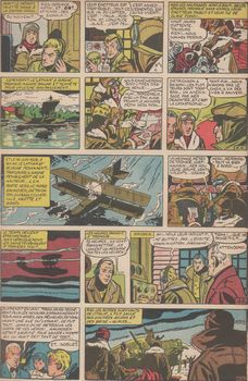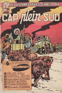 remarques: | albums de 32 pages, 50% couleur, 50% N&B dessinateurs: Paape, Tacq et Graton scénaristes: Charlier et Joly préface sur les explorations et les découvertes, sur les aventuriers et les aventuriers de la Foi (St-Paul, Foucauld, Xavier), une des plus grandes aventures: les Croisades et les aventures du futur: la conquête de l'espace "l'homme est ainsi fait qu'il se souvient davantage du mal qu'on lui a fait que des bienfaits dont il est redevable" a) Saïd, ami fidèle (1860) construction du canal de Suez par Ferdinand de Lesseps - Tacq/Joly b) cap plein sud (Antarctique 1912), le duel pour la conquête du pôle sud par Robert Scott sur son bateau Terra Nova et Ronald Amundsen (qui à ce moment eu un comportement peu fair-play avec Scott) sur son bateau le Fram - Paape/Charlier c) martyrs du pôle sud, différence entre le pôle nord (au milieu d'une mer gelée) et plus facile d'accès que le pôle sud (au centre d'un continent défendu par d'énormes glaciers), mort de Robert Scott le 17.3.1912 - Paape/Charlier d) comment mourut Amundsen, en partant le 18.6.1928 à bord d'un hydravion français Latham 47 en essayant d'effectuer le sauvetage de Nobile (un adversaire italien peu loyal d'Amundsen) échoué avec son dirigeable "l'Italia" au pôle nord, par cette action Amundsen rachetait sa conduite envers Scott - Paape/Charlier e) médecin des noirs (1913) Albert Schweitzer et sa femme qui abandonnèrent tous leurs biens pour s'installer à Lambaréné - Paape/Charlier f) le héros de Budapest et g) seul contre la barbarie l'histoire de Raoul Wallenberg, ambassadeur suédois à Budapest (1944) qui s'engagea pour sauver la vie de nombreux juifs hongrois et qui disparut sans laisser de traces à la libération de Budapest par les russes - Graton/Charlier >> quelques bon récits, à nouveau les meilleurs étant celles du duo Paape/Charlier |
