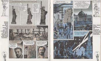 remarques: | album broché petit format, N&B titre complet: l'histoire vraie de la statue de la liberté jusqu'en 1967, la statue de la Liberté resta la plus grande statue du monde (détrônée par la statue de la Patrie à Volgograd qui atteint 82 mètres), construite par Frédéric Auguste Bartholdi, sculpteur français qui inaugura sa statue à New York le 28.10.1886 (47 m de haut avec le bras, mais sans le socle, au total 93 m avec le socle) érigée sur l'île de Bedloe et offerte par la France à la Jeune Amérique, surnommée par les américains "Miss Liberty" description de Bartholdi (1834-1904), étude de sculpture aux Beaux-Arts, visite de l'Egypte où il est impressionné par les monumentales sculptures égyptiennes, participe avec Eiffel aux travaux du Capitol de Washington sur l'instigation de La Fayette (un de ses descendants), on propose à Bartholdi de marquer l'amitié franco-américaine par un monument Bartholdi quitte la France après la guerre de 1870 et débarque à New York, le président Grant lui donne son accord pour une statue, mais il faut encore trouver l'argent nécessaire, Bartholdi réussit à recueillir des fonds durant un voyage à travers les USA et retourne en France première maquette copiée sur la Liberté des barricades par Delacroix (1830), en 1876 pour la fête nationale américaine, une première partie est livrée: le flambeau géant, puis en 1877 ce sera la tête, entretemps Bartholdi finit le Lion de Belfort en hommage aux défenseurs de Belfort (1870-1871) grâce à une loterie, le travail continue en 1880, Eiffel se joint à Bartholdi, il confectionne une armature d'acier sous une couverture de cuivre (350 plaques de cuivre) 1883 construction du pont de Brooklyn 1884 la statue est presque achevée, il lui manque un piédestal qui sera construit en 1885 avec du béton armé, mai 1885, la statue est démontée et envoyée par bateau à New York dans 214 caisses le 28.10.1886 la statue est inaugurée et commence à éclairer le monde >> un petit livre instructif plutôt intéressant avec un graphisme tout à fait acceptable |