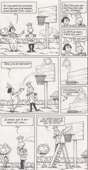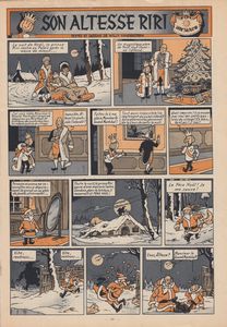 remarques: | 3 tomes parus N&B dans l'édition Magic Strip et 4 tomes parus en couleur dans les éditions Standaard, dite collection bleue Vandersteen, seul le tome 1 est collectionné ici à titre d'exemplaire représentatif de la série les personnages: - le prince Riri - le grand Maréchal - madame la Comtesse - Fourak, le prince confrère de Riri quelques bons gags dont celui de la page 15 >> p. 29 la critique de l'art la devise du Prince Riri (Journal Tintin only): "laehve twa plut-ho" >> un album de 32 pages avec 2 strips par page, les gags sont plutôt du genre naïfs, mais pas toujours dénués de bon sens et un bon graphisme à la ligne claire annexes - couverture et 4ème plat du tome 1 - planche prince Riri du journal Tintin - 2 planches extraites de l'album |
