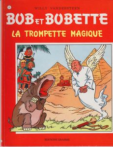 remarques: | l'histoire de la princesse égyptienne Banylon surnommée le rossignol du désert, fille du pharaon Tou-Ten-Kafé, transformée par un sphinx en un gros hippopotame avec le sobriquet l'hippopotame-chanteur et le seul moyen de lever la malédiction est d'utiliser le pouvoir de la trompette magique mais celle-ci a disparu >> p. 6 la princesse hippopotame toutefois un devin et un prince égyptien retrouvent l'endroit où se trouve la trompette magique: dans un musée d'histoire bruxellois le devin veut épouser la princesse, pour cela il écarte le prince et part seul dérober la trompette dans le musée, mais dans sa fuite, il se heurte à Lambique en crise de somnambulisme qui se retrouve en possession de la trompette magique par peur d'être arrêté pour vol, Lambique s'enfuit au Maroc et s'engage dans la légion étrangère, mais Mephisto le devin, le prince et Sidonie+Cie sont sur les traces de Lambique >> p. 32 le bon-moi et le mauvais-moi de Lambique >> p. 34 au secours, monsieur Vandersteen après bien des mésaventures, tout le monde arrive au Nil où Lambique a été capturé et enfermé dans une pyramide par les poules de sable (créatures du sphinx) qui immobilisent leurs victimes grâce à un rayon lumineux que lance leur oeil droit quand ils ferment leur oeil gauche >> p. 46 le mystérieux paquet de Sidonie (= un pick-up avec disques pour tromper le sphinx) finalement la princesse Banylon redevient humaine, mais c'est Lambique qui la remplace comme hippopotame-chanteur, toutefois grâce à l'ingéniosité de Sidonie et à l'action du bon-moi de Lambique, le sphinx sera satisfait et rendra aussi à Lambique sa forme initiale >> scénario sur une idée originale, mais histoire encore plus loufoque parmi les loufoques et décidément l'imagination de Vandersteen est sans limite, toujours un bon graphisme et coloriage |