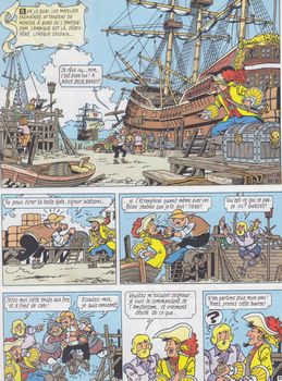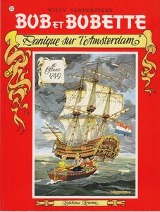 remarques: | édition Erasme, broché, no 202, 58 pages aventures de l'an 1984 à l'an 1749 par transmutation, l'histoire du vaisseau "Amsterdam" échoué sur les côtes anglaises par des naufrageurs, Lambique, Bob et Bobette sont mandés pour explorer l'épave de l'Amsterdam, notamment afin de retrouver un mystérieux coffre aux voix qui contient 3 soldats d'époque miniatures >> p. 12 apparition de l'homme-oiseau fantôme dit le corbeau >> p. 13 idem de la dame blanche qui combat l'homme-oiseau >> scénario sans grande saveur ni pour le texte ni pour le graphisme |