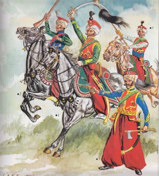 remarques: | titre complet: les soldats du premier empire, album de 238 pages, format 30 x 26 cm, avec jaquette première partie: l'armée française 1/ Napoléon et son état-major description de Bonaparte, général de brigade à 24 ans lors du siège de Toulon en 1804 par décret, il nommera 14 de ses anciens compagnons maréchaux d’Empire: Augereau, Bernadotte, Berthier, Bessières, Brune, Davout, Jourdan, Lannes, Massena, Moncey, Mortier, Murat, Ney et Soult tous survécurent aux guerres napoléoniennes, sauf Bessières et Lannes plus tard il y en eu encore 8 autres: Victor, Oudinot, Mac Donald, Marmont, Suchet, Gouvion-Saint-Cyr, Poniatowski et Grouchy mais Napoléon traitait durement ses maréchaux et généraux (260) qui la plupart acceptaient toutefois leur soumission, néanmoins ils furent tous braves et courageux dans l’environnement de Napoléon, il y avait aussi les aides-de-camp, les chefs d’état-major et les officiers d’ordonnance Napoléon était peu intéressé par la musique, mais il n’ignorait pas le puissant effet qu’elle faisait sur le soldat >> p. 16 le corps de musique militaire (env. 20 musiciens) commandé par le tambour-major on utilisait surtout les fifres et les tambours ainsi que la trompette dans la cavalerie >> p. 18 les instruments de musique la défaite de Trafalgar empêcha Napoléon d’envahir l’Angleterre, l’armée des côtes de l’Océan devint alors la Grande Armée l’infanterie comprenait les grenadiers (compagnies d’élite), les fusiliers, les voltigeurs et les chasseurs rangés en infanterie de ligne et infanterie légère le plus grand ennemi de l’infanterie était la cavalerie et pour se défendre, les fantassins adoptaient la formation en carré l’équipement n’était pas le meilleur: fusil à silex = peu précis à partir de 100 mètres et pour le charger il fallait au moins une minute, la baïonnette restait alors une arme importante, le fantassin disposait aussi d’un petit sabre: le briquet l’uniforme était généralement bleu avec culotte blanche, comme coiffure le shako avec visière ou le bonnet à poil, les souliers avec guêtres s’arrêtant au genou complétaient l’équipement les sapeurs portaient en plus un large tablier blanc la CAVALERIE IMPERIALE se subdivisait entre 3 catégories : - grosse cavalerie = cuirassiers et carabiniers - cavalerie de ligne = dragons et lanciers - cavalerie légère = hussards et chasseurs à cheval 1) cuirassiers (12 régiments), conçus surtout pour la charge, équipés du casque et de l’armure (pas toujours à l’épreuve des balles) et armés du sabre et de deux pistolets, ils étaient surnommés "les grands frères" 2) carabiniers = les grenadiers de la cavalerie, armés de la carabine, du sabre de cavalerie et de deux pistolets, coiffés du casque avec chenille 3) dragons (30 régiments) armés du sabre, d’un pistolet et d’un fusil, ils combattaient à pied ou à cheval et disposaient d’une baïonnette 4) chasseurs à cheval (31 régiments) armés d’un sabre, d’un pistolet et d’un mousquet, ils avaient pour mission d’éclairer le chemin, surveiller l’ennemi et surprendre les avant-postes et les convois 5) chevau-légers et lanciers (10 régiments), créés en 1811 pour contre-carrer les cosaques, armés de la lance de 2,75 m et d’un sabre, un pistolet et un mousqueton, ils étaient utilisés pour les charges contre la cavalerie adverse, souvent même avec les cuirassiers 6) les hussards (13 régiments), c’étaient les cavaliers les plus chatoyants de l’Empire et leurs régiments rivalisaient entre eux, ils étaient armés du sabre et du mousqueton, ils étaient surtout utilisés pour des raids lointains mais leur témérité et leur audace éclaircissaient rapidement leurs rangs 7) la gendarmerie armée du sabre et mousqueton, utilisée contre les partisans et les réfractaires >> p. 50/51 une imposante charge d’hussards >> p. 69 timbaliers à cheval l’artillerie correspondait plus ou moins à l’artillerie mise au point par Gribeauval les canons pouvaient tirer jusqu'à 1500 m en utilisant des boulets de fer par ricochet ou par impact direct ainsi que de la mitraille les obusiers étaient utilisés pour la destruction des fortifications l’artillerie comprenait 300 compagnies disposant chacune de 6 à 8 pièces l’uniforme des artilleurs étaient principalement bleu foncé le service de santé de tous les services des armées napoléoniennes, le service de santé était l’un des moins organisés mais grâce à l’impulsion de Larrey, elle remplit plus ou moins son office malgré que les chirurgiens en général n’étaient guère performants le génie/les pontonniers ils étaient rattachés à l’artillerie, sapeurs et mineurs firent preuve d’une ingéniosité redoutable les écoles militaires à la veille de la révolution, il y en avait 13, la république en annula plusieurs; les plus célèbres: celle d’Auxerre et l’école de Mars crée en 1794 avec l’école polytechnique en 1795, en 1802 apparurent l’école spéciale militaire de Fontainebleau et celle de La Flèche: le Prytanée et en 1809 Saint-Cyr, la même année, Napoléon créa l’école de cavalerie à St-Germain qui fut transférée à Saumur lors de la Restauration en 1804 Napoléon remit à ses régiments leur nouvel emblème: l’aigle aux ailes à demi-déployées, chaque régiment reçut son aigle porté par un enseigne comptant au moins 10 ans de service musiciens à cheval créés sous l’Empire, une fanfare à cheval comptait 16 trompettes, 6 cors et 3 trombones et était parfois dotée de timbales 2/ - la Garde Impériale elle est crée le 18.5.1804 (28 floreal An XII), Napoléon en fit un corps d’élite fort de 24'000 hommes en 1804 et de 126'000 hommes en 1815 la Garde était composée des grenadiers et des chasseurs (vieille garde), des fusiliers (moyenne garde) et des tirailleurs, flanqueurs et voltigeurs (jeune garde) pour entrer dans 