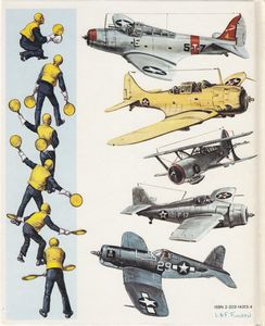 remarques: | tome 3, titre complet: Etats-Unis, Japon, Chine, évolution des grandes armées, 1943-1945, France libre, Milice, volontaires en Grande-Bretagne, Danemark, Pays-Bas, Etats balkaniques et danubiens, parachutistes, commandos, artillerie, engins balistiques, sous-marins première partie: les Etats-Unis 1/ - l'armée américaine en 1937, les USA avaient préparé un plan de mobilisation avec la jonction de la Garde Nationale et de l'armée, en 1939 plan "rainbow" = programme d'expansion "selective service and training" avec un effectif de 1,5 mio d'hommes en 1941, malgré la menace japonaise, c'est vers l'Allemagne que se dirigèrent les plus grands efforts, ceci pour soutenir l'URSS, en 1942, transfert de troupes américaines en Irlande pour les entraîner, puis en Angleterre et débarquement octobre 42 en Afrique du Nord; l'Afrique libérée, ce fut l'invasion de l'Italie et la préparation du grand débarquement en 1944 n.b. G.I. = initiales de "Government issue" (fourniture du gouvernement) ou "general issue (mobilisé) l'effectif des forces américaines (sans la marine) atteignit 11,3 mio d'hommes et les pertes (sans la marine) furent d'env. 300'000 morts 2/ - uniformes et armement - l'équipement le casque de type anglais porté au début de la guerre fut vite remplacé par le casque standard M1 et un département spécial fut chargé de mettre au point la "garde-robe" du G.I. qui devint le soldat le mieux habillé du monde >> p. 14 liste des principales unités d'infanterie engagées en Normandie et au Pacifique et la décoration la plus haute était celle de la "medal of honour" >> p. 7 le G.I. - l'armement léger l'appareil guerrier américain devint au cours de la guerre de plus en plus élaboré - le fusil modèle standard était le Garand M1 et la Winchester calibre 30 M1, tous les deux semi-automatiques et d'une portée de 3000 m - la mitraillette fut la fameuse Thompson, puis un peu plus légère et plus sûre: le US M3 - la mitrailleuse la plus utilisée fut le Browning M2 (450 coups à la minute, portée jusqu'à 6000 m!) et les mortiers 60 mm M2, 81 mm M1 et mortier lourd de 105 mm - une arme nouvelle: le bazooka = la plus célèbre application de l'artillerie américaine = le lance-fusées portatif >> p. 15/17 l'armement léger dont le bazooka 3/ - les blindés la première force blindée américaine fut mise sur pied en 1940 par le colonel Chaffee devenu après coup général et les premiers chars nommés M3 livrés à l'Angleterre connurent leur baptême du feu en Libye en 1942, un nouveau char apparut: le fameux M4 Sherman qui fut construit à 42'000 exemplaires sur les 80'000 chars produits par les USA durant la guerre, il était robuste, rapide, avec une tourelle très mobile et muni de chenilles qui résistaient à 4800 km de route >> p. 21/23 types de chars US tel le "Grant", le char léger M5 "Stuart" et le Sherman perfectionné de 1944 4/ - l'aviation américaine c'est dans le domaine de l'aviation que les USA allaient donner la plus spectaculaire démonstration de sa puissance, l'industrie américaine produisit plus de 120'000 appareils de tous types dont la moitié engagés sur le front du Pacifique les USA possédaient alors 15 armées de l'air et un Bomber Command de super-forteresses l'attaque sur Pearl Harbour causa de très lourdes pertes à l'armée américaine mais celle-ci avait les moyens de les remplacer très vite et dès 1943, l'Air Force disposait déjà de l'avantage du nombre et des avions techniquement supérieurs à l'ennemi les chasseurs les meilleurs chasseurs contre la Luftwaffe furent sans conteste le Lockheed P38 Lightning, le Republic P47 Thunderbolt et le North American P51 Mustang = peut'être le meilleur chasseur de toute la guerre n.b. le titre d'as (Ace) était accordé à tout aviateur ayant à son actif 5 victoires aériennes homologuées >> p. 25 types de chasseurs dont le "Grumman" Wildcat = le meilleur chasseur de la Navy les bombardiers un exploit unique fut effectué le 18.4.1942 par 16 B25 Mitchell commandés par le lieutenant-colonel Doolittle qui avaient décollé du porte-avions Hornet pour un raid sur Tokyo >> p. 27/29 les bombardiers de l'US Air Force dont les B17 et B29 super-forteresses qui forcèrent l'Allemagne à capituler en détruisant son industrie du carburant et son réseau de communication deuxième partie: le Japon 1/ - la sphère de coprospérité en 1910, la victoire du Japon sur les russes lui avait fait acquérir les îles Kouriles, Formose et toute la péninsule de Corée, à la fin de la guerre de 14-18, ayant rejoint les alliés, le Japon reçut sous mandat les îles Marshall, Carolines et Mariannes (ex-allemandes) pour se procurer les matières premières afin de mettre sur pied une industrie métallurgique, le Japon occupe en 1931 la Mandchourie et en 1937 une partie de la Chine et les victoires allemandes en Europe ne firent que faciliter l'expansion impérialiste du Japon qui occupa en quelques semaines d'immenses territoires dans l'Asie du Sud-Est, mais il se heurta alors à la nation américaine, ce qui bouleversa tous les plans stratégiques si soigneusement mis au point 2/ - le soldat japonais d'une obédience totale, combattant au mépris de la mort avec l'esprit de sacrifice inspiré par le vieux culte martial du bushido, il bénéficiait aussi d'une formation militaire très dure avec la pratique très poussée du camouflage l'armement l'armée japonaise fut dotée d'une grande variété d'armes légères mais le mortier, arme maniable et redoutable, fut une des meilleurs réussites de l'arsenal japonais 3/ - les blindés le premier blindé typiquement japonais apparut en 1927, puis vinrent des chars légers (kei sensha) et des chars lourds (chu sensha) en 1939, les japonais disposaient d'env. 2000 chars mais dans les combats du Pacifique, les chars ne jouèrent aucun rôle décisif >> p. 37/39 blindés japonais 4/ - l'aviation nippone - en 1920 première école d'aviation avec de