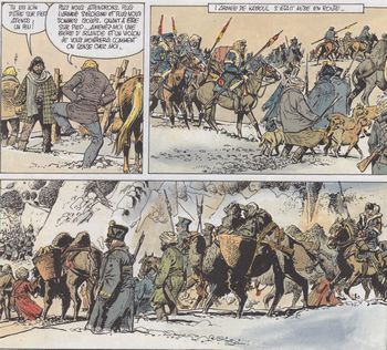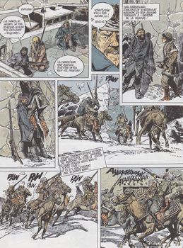 remarques: | suite des aventures de Lester Cockney en Afghanistan au XIXème siècle Lester se remet vite de ses blessures et apprend l'aventure de l'armée anglaise d'Elphinstone qui fait retraite avec des civils anglais depuis Kaboul à Djellalabad en plein hiver >> p. 15 l'amour et la passion des chevaux Lester afin d'aider miss Emma Pebbleton, décide de se rendre à la forteresse de Billa Hissar afin de ramener les parents d'Emma, arrivés à la forteresse, Lester et Emma apprennent que le couple Pebbleton a quitté Billa Hissar; capturés par Akbar Khan, Lester et Emma réussissent à s'évader et retrouvent les parents d'Emma, retranchés avec les deux français sur la route de Djellalabad et sur le point d'être massacrés par les rebelles afghans, ils sont délivrés par la cavalerie du général Shannon arrivée bien à propos, mission réussie pour Lester >> p. 35 apparition de l'ornithologue Eusebe Aïmar Thalamus (un brin d'humour chez les fous de Kaboul) >> toujours un bon scénario et un bon graphisme très bien maîtrisés par Franz avec une jolie couverture |