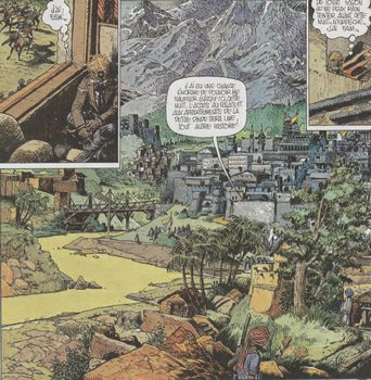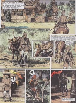remarques: | 1844, Pakistan, Pendjab, Lester à la recherche d'une jeune hongroise, amie de miss Pebbleton >> 8/9 rencontre avec une guenon, un naja, un scorpion et un tigre royal dans un petit temple accueillant arrivée chez le radjah de Chandistar où se trouvent prisonnière la vicomtesse Ilona von Howath-Paley et la jeune indienne Taranna qui donnera un coup de main à Lester dans sa tentative de fuite Taranna provoque une diversion chez les éléphants ce qui permet à Lester de s'enfuir à la mode Rambo du palais de Chandistar avec la jeune hongroise, mais il faudra encore se débarrasser des thugs à la solde du radjah de Chandistar et finalement la mission Lester sera réussie, toutefois son cheval Picadilly y trouvera la mort, retour vers l'Europe pour Lester en compagnie de Ilona et Taranna >> une aventure somme toute plutôt classique, mais avec toujours un bon graphisme |