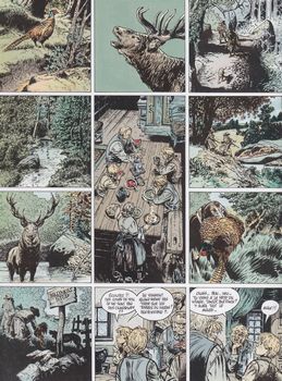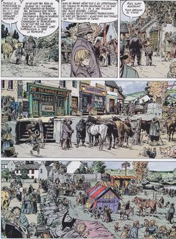 remarques: | deuxième et dernier tome sur la jeunesse de Lester Cockney, 64 pages fort intéressantes Lester se trouve bien à Ballymoss Stud avec les chevaux (étalons, juments et foals), prise de contact avec le paddock, les poulains et Black Minster l'étalon >> p. 11 le pur-sang est un animal très sensible >> p. 7-12 la chasse à courre du colonel anglais Clerke-Saunders et l'immense et dangereuse arrogance de la classe anglaise en Irlande >> p. 26/27 le sauvetage de Savage Beauty l'histoire de Lady Hannessy d'origine suisse qui deviendra propriétaire du haras de Ballymoss Stud malgré les intrigues du colonel Saunders, lady Hannessy devient "british" par un mariage en blanc, reprend en main Ballymoss Stud et poursuit Saunders en justice pour tous les méfaits qu'il a commis, tandis que Lester continue son périple en rejoignant son vieil ami Old Tim à Dingle >> à nouveau un album exceptionnel tant pour le scénario que pour le graphisme, un récit à tendance très anti-anglais, dommage qu'il n'y ait pas eu de suite, mais il faut aussi lire les deux albums s'y référant quelque peu: Pur-Sang et Wyoming doll Information Shamrock Song prolonge la sublime Irish melody, composée par Franz, cette seconde ballade irlandaise retrace l'adolescence de Lester Cockney et livre ainsi le chaînon manquant qui relie le héros aux "fous de kaboul", le premier chapitre de ses aventures d'adulte, Lester débarque sur le sol anglais alors que les irlandais luttent contre la misère et que le joug des anglais est de plus en plus lourd à supporter |