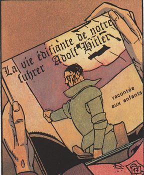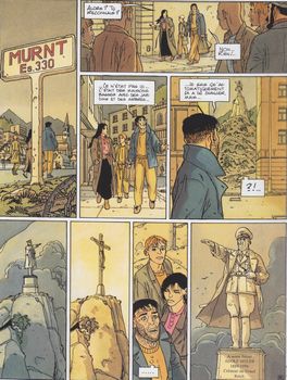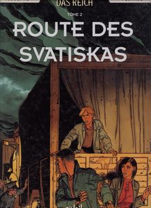 remarques: | la fuite sans fin se poursuit, les fuyards (la femme Too, le blondinet Jo, le vieux Shami et le costaud Buz) réussissant à atteindre l'Europe, l'un deux étant originaire de Gdansk où se trouve une statue d'Adolf d'Hitler, le conquérant du monde >> p. 19 la découverte d'un stock de livres pour la jeunesse avec comme titre: "la vie édifiante de notre Führer Adolf Hitler racontée aux enfants" >>p. 30 une affaire de cochons concernant des saucisses (de porc?) >> un graphisme acceptable, mais un scénario quelque peu décevant de Rodolphe, avec toujours quelques fautes d'orthographe (p. 12 décole au lieu de décolle et p. 17 attèlent au lieu d'attellent) la fuite restant inachevée au tome 2 et un 3ème tome prévu heureusement ne paraîtra pas |