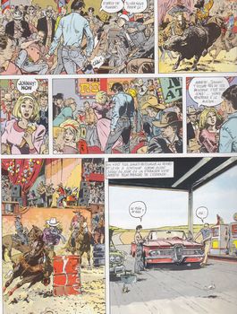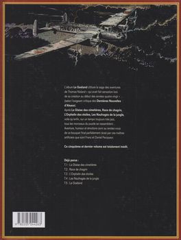 remarques: | l'épopée de Thomas et John à travers la jungle touche à sa fin mais Thomas retournera seul à Saïgon car John a trouvé le bonheur dans un village laotien avec son deuxième amour qui remplace celui de Peggy >> p. 9 l'histoire de John, amoureux de Peggy dans une station-service du Texas et qui le quittera pour suivre un producteur de cinema à Hollywood, John retrouvera Peggy devenue une véritable pute encanaillée, elle ne voudra plus rien savoir de John et pour l'oublier, John s'engagera dans l'armée américaine au Vietnam arrivé à Saïgon en piteux état, Thomas Noland sera soigné par une doctoresse qui lui fera rencontrer son père vivant sur une jonque et atteint d'une maladie incurable peu après leur rencontre, Trevor se suicidera pour ne pas devenir une charge à son fils et rentré en Amérique, Thomas Noland perdra encore sa mère et sa fiancé, mais il repartira à l'aventure en faisant le tour du monde à cheval et trouvera enfin le bonheur sur une île du Pacifique en laissant définitivement (on l'espère pour lui) la poisse de la famille Noland derrière lui et il en écrira un livre "le vol du goéland" de Noland n.b. Franz finit la série avec ses amis "les chevaux" et probablement qu'il aimerait être réincarné en cheval le cas échéant! >> un récit au vol de goéland pour achever la série 9 ans après le volume 4, un épisode final, triste et sentimental avec toutefois une étoile qui brille au firmament mais l'histoire (si elle est totalement inédite selon l'éditeur comme mentionné au 4ème plat) n'est plus très convaincante et le graphisme de Franz baisse nettement en qualité Information fin des tribulations de la famille Noland, en général beaucoup d'imagination, bien raconté et bien dessiné du moins jusqu'au tome 4 |