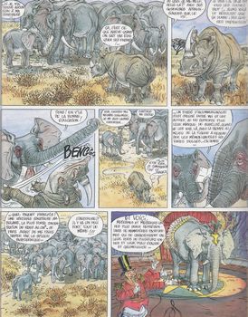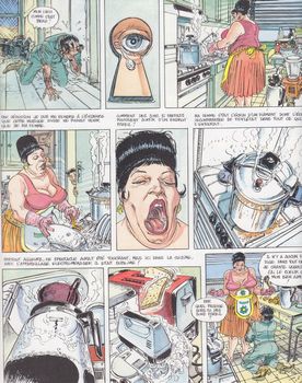 remarques: | 4ème volet de la série avec les épisodes: - le tigre du Bengale (Moucherot) contre la créature - pachyderme que ça - briefing - une perspective laborieuse - les nouveaux transports amoureux - la perle du désert - le repos du guerrier - l'eau à la bouche - zapping ascensionnel - plein les yeux - soir de pleine lune dans les Carpathes dont les meilleurs: briefing (satire sur les dons au Tiers-Monde), pachyderme que ça (la chirurgie esthétique), l'eau à la bouche (l'alimentation) >> p. 9 l'enfer rose >> à nouveau du fantastico nonsensique, satire de la société, critique de l'art et de l'économie, les titres deviennent pompeux, mais les gags sont nettement moins recherchés, l'effet de saturation commence à se faire sentir, toutefois l'ensemble reste plutôt intéressant malgré aussi une baisse sensible du graphisme |